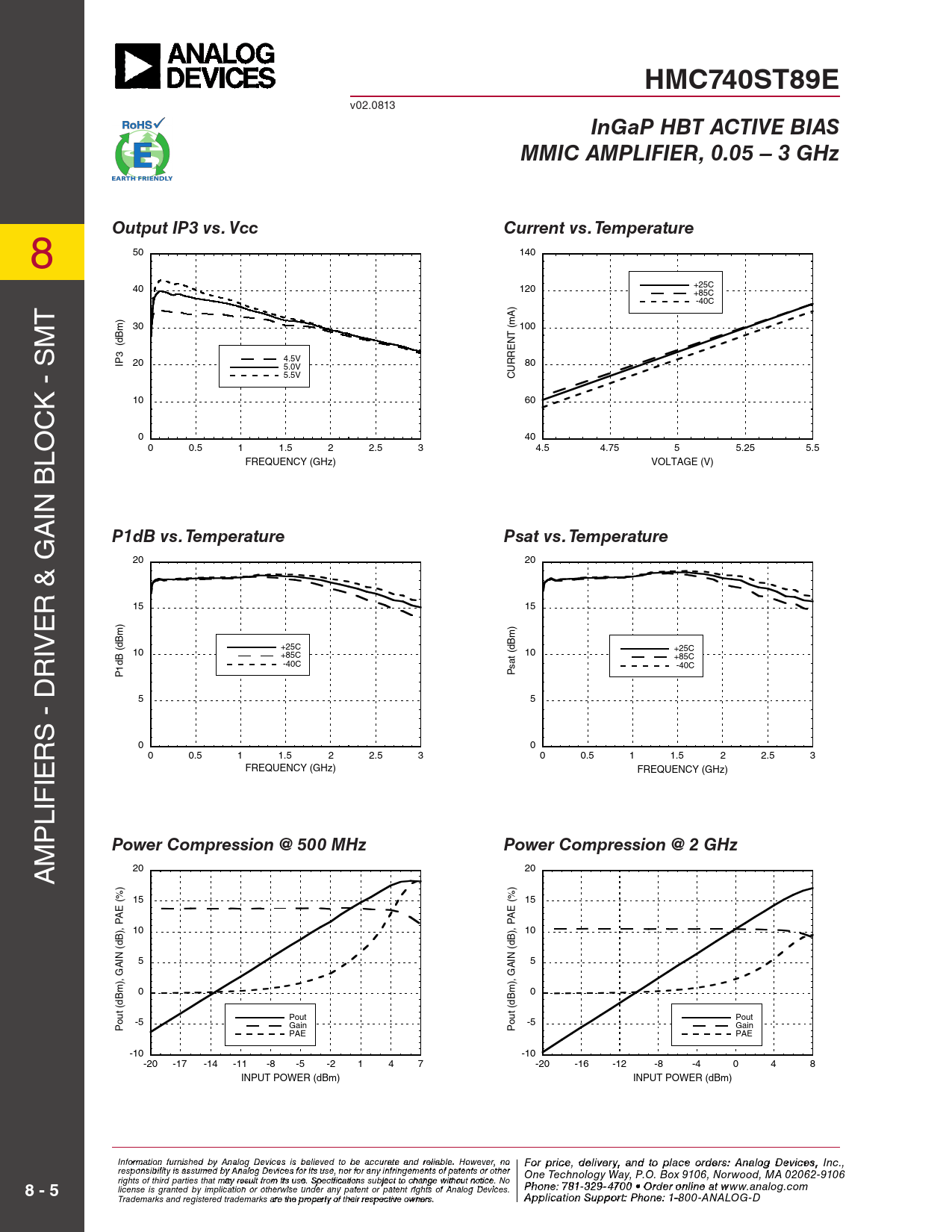 Pages / Page8 / 5 — HMC740ST89E. InGaP HBT ACTIVE BIAS. MMIC AMPLIFIER, 0.05 – 3 GHz. Output …