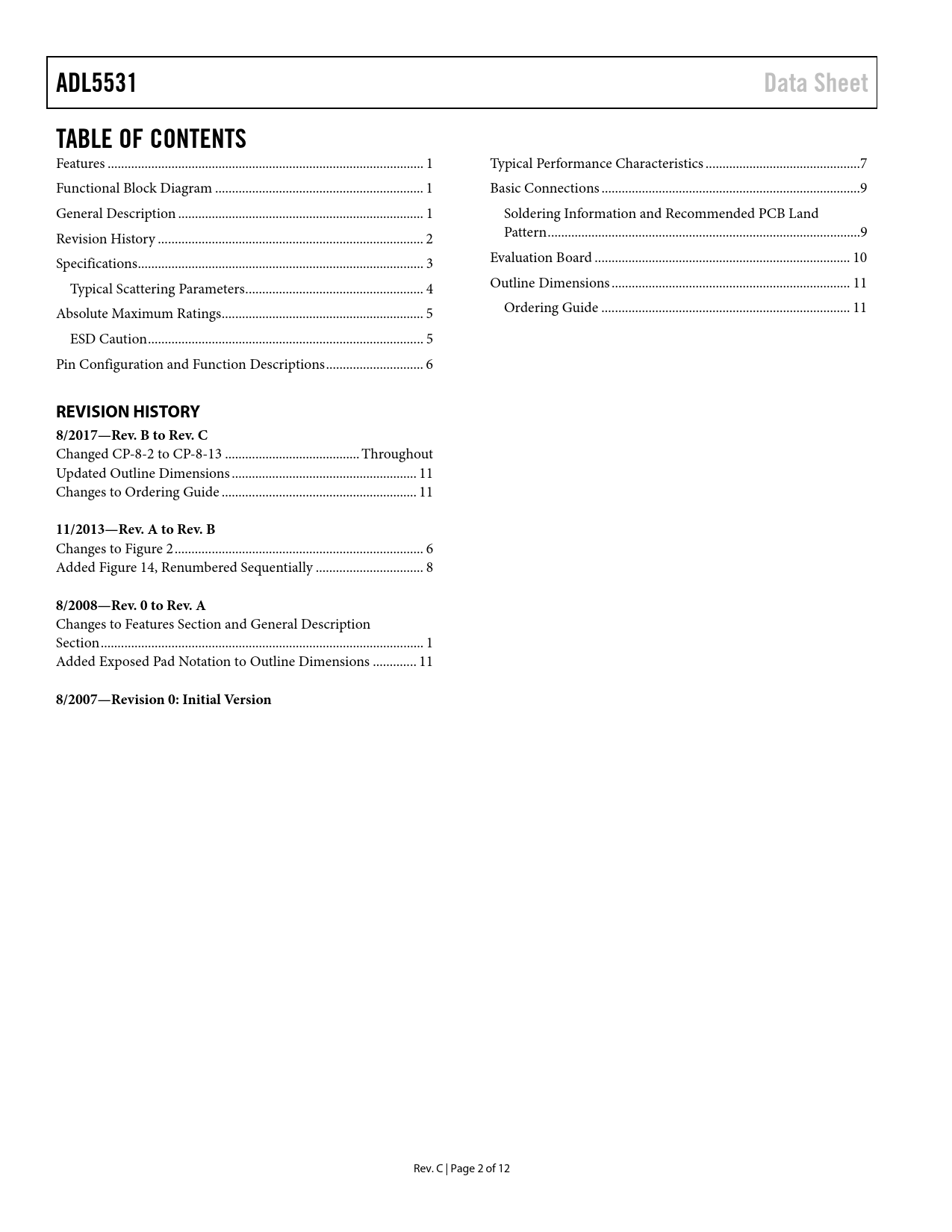 Pages / Page12 / 2 — ADL5531. Data Sheet. TABLE OF CONTENTS. REVISION HISTORY 8/2017—Rev. B to …