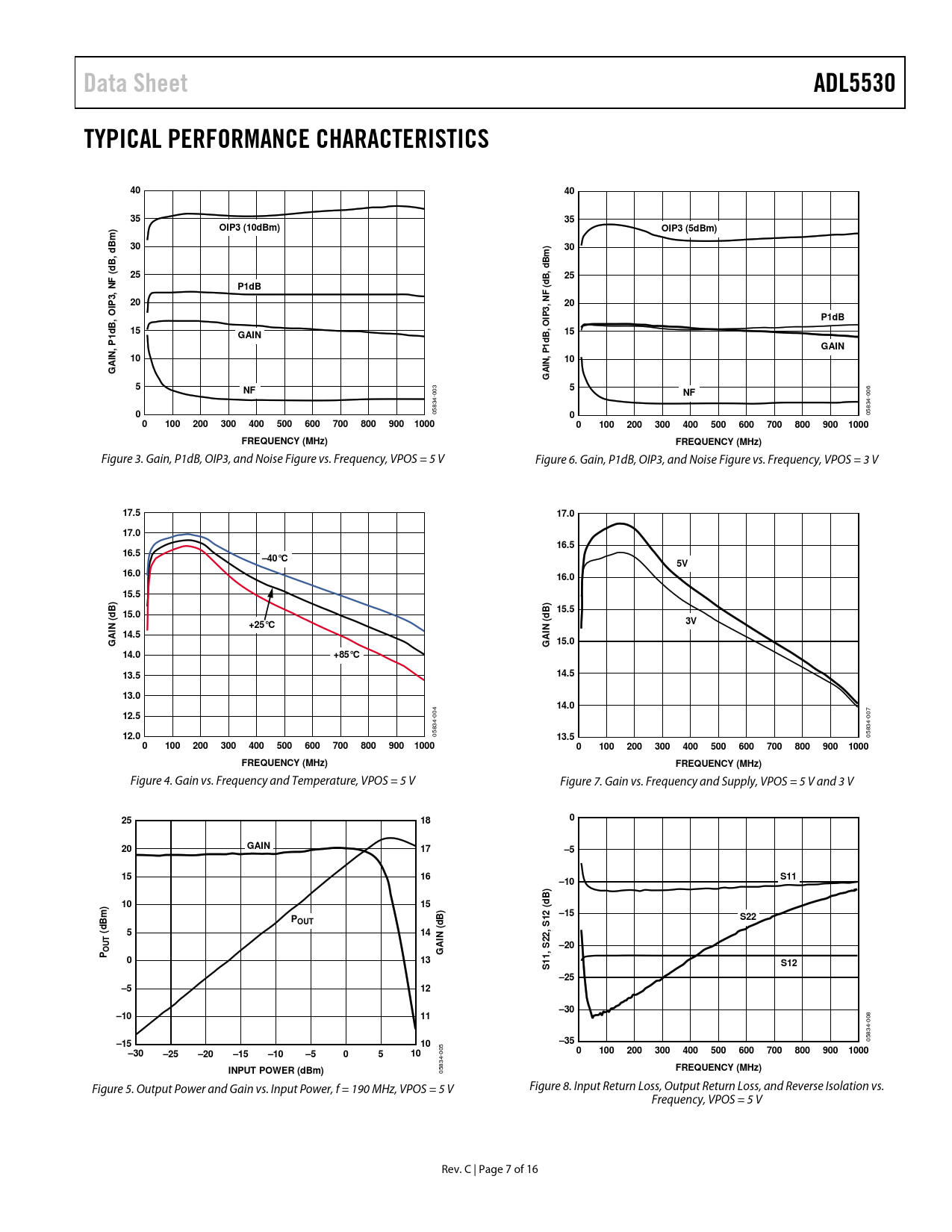 Data Sheet. ADL5530. TYPICAL PERFORMANCE CHARACTERISTICS. OIP3 (10dBm). OIP3 (5dBm). m B. , d. d (. B d. P1dB. , N. OIP ,. IP3. , O. GAIN. , P. A G. 100