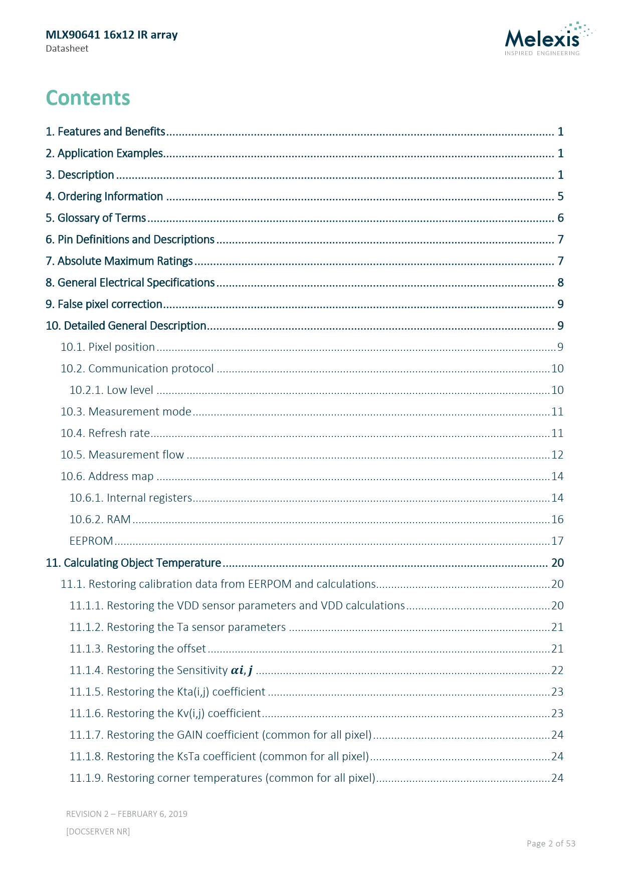 Pages / Page53 / 2 — MLX90641 16x12 IR array. Contents