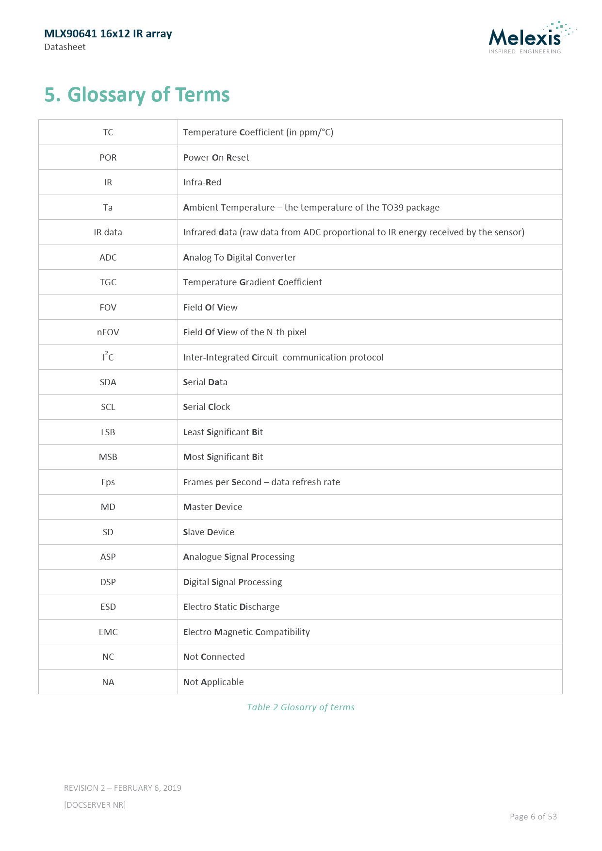 MLX90641 16x12 IR array. 5. Glossary of Terms