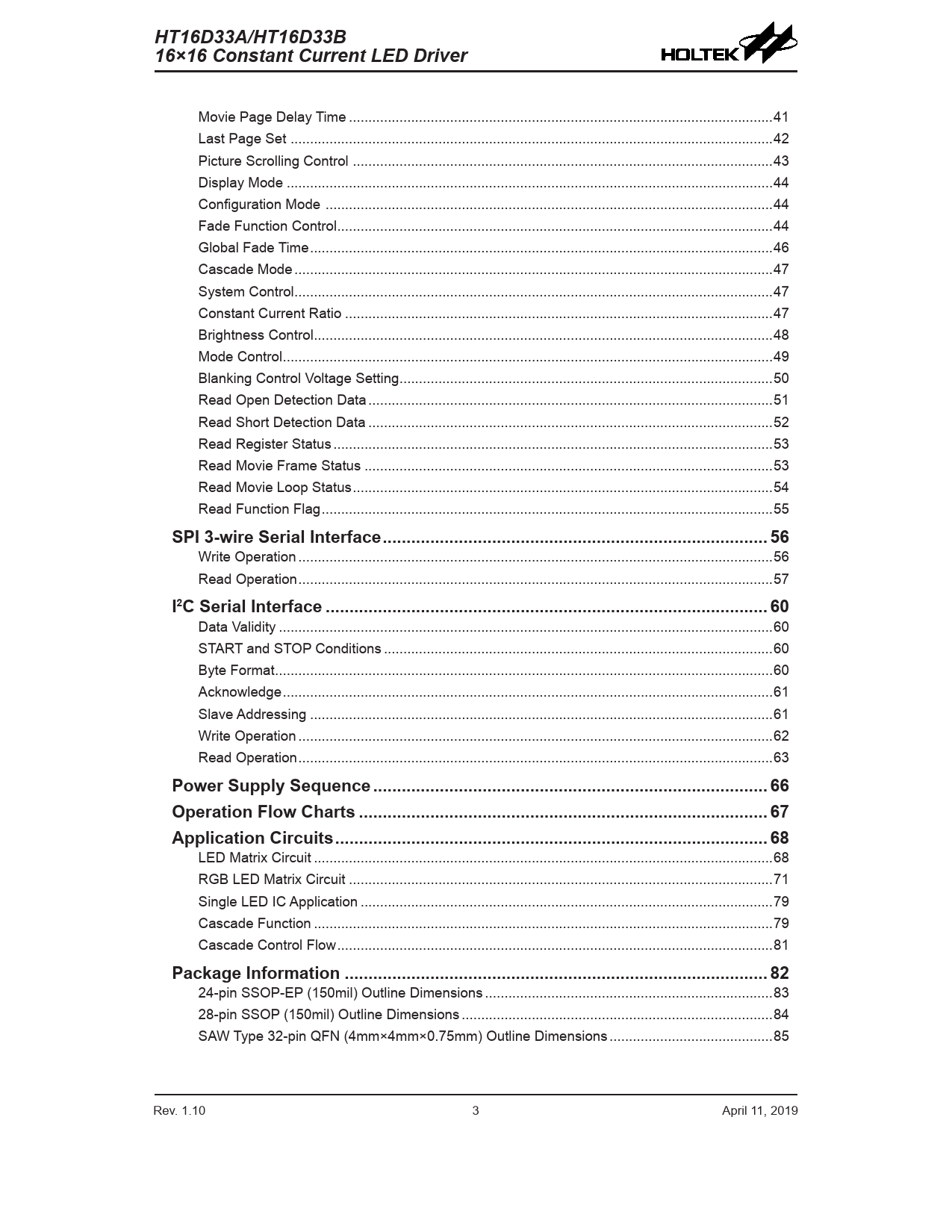 HT16D33A/HT16D33B 16×16 Constant Current LED Driver SPI 3-wire Serial Interface .. 56 I2C Serial Interface .. 60