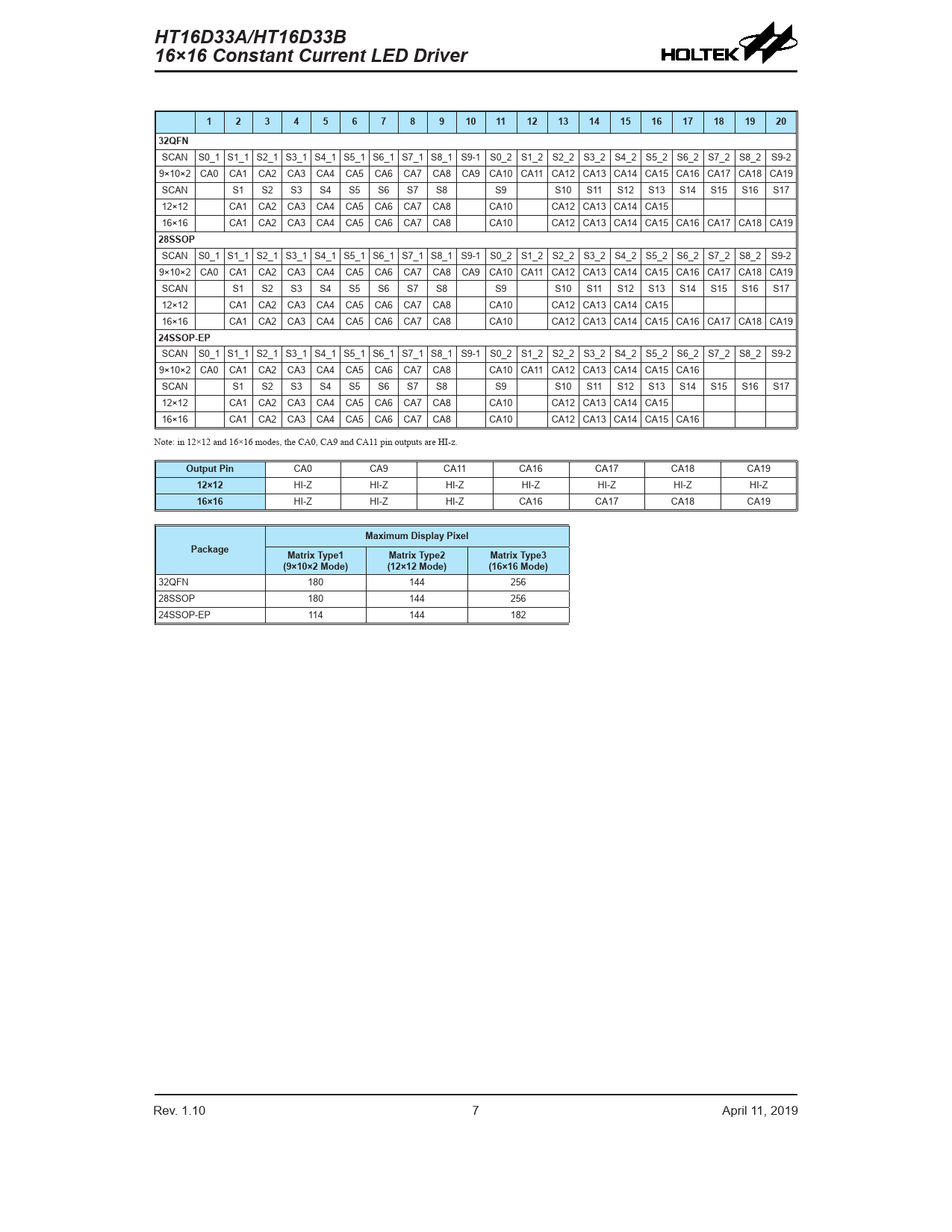 | Pages / Page | 86 / 7 — HT16D33A/HT16D33B. 16×16 Constant Current LED Driver. 32QFN. 28SSOP. … |