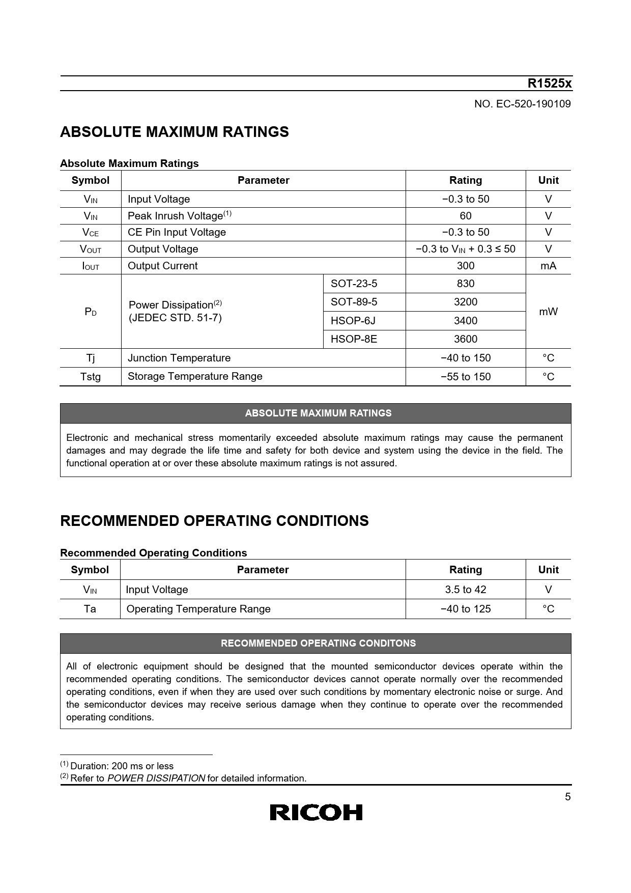 Datasheet R1525x for Automotive Applications (Ricoh) - 5
