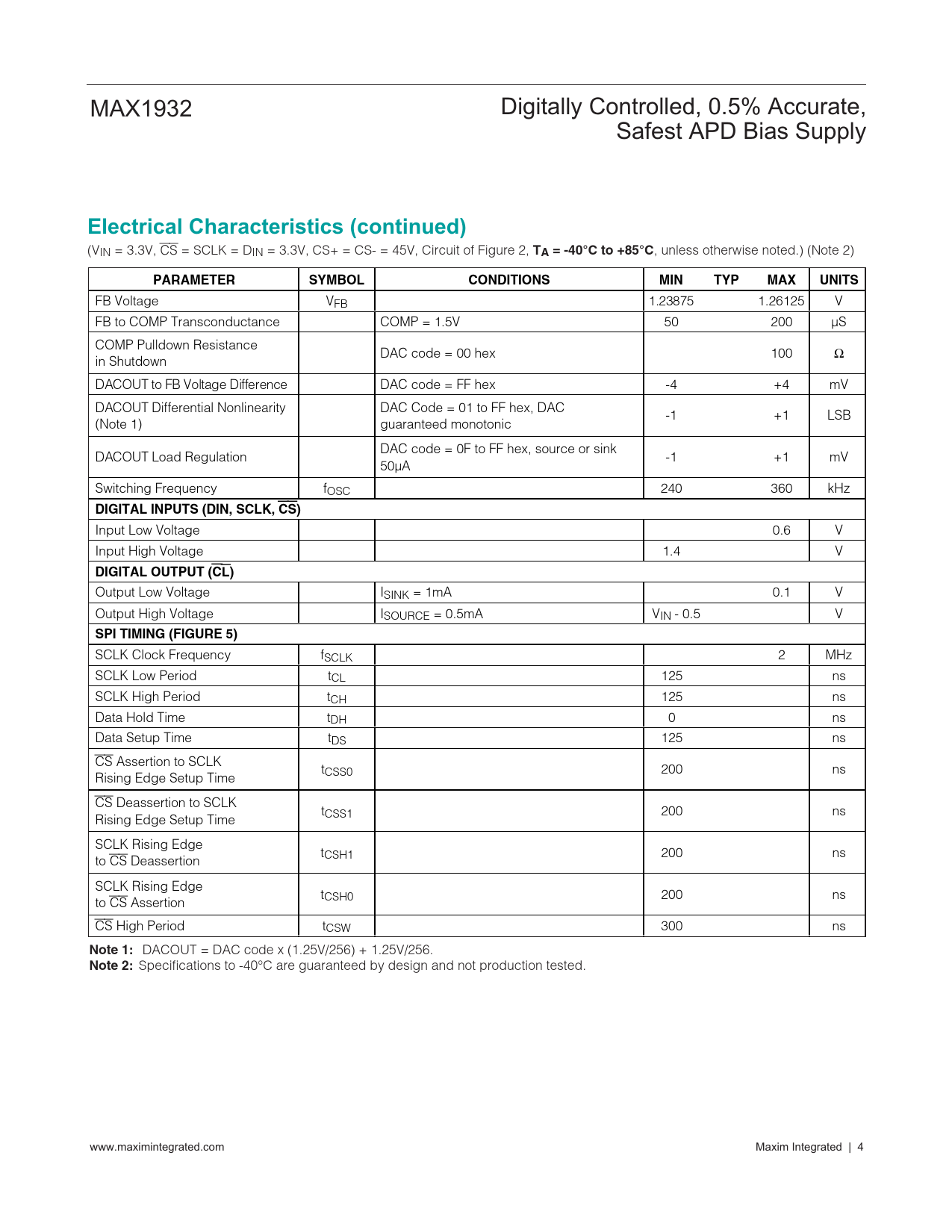Specifications to -40°C are guaranteed by design and not production tested. www.maximintegrated.com Maxim Integrated | 4