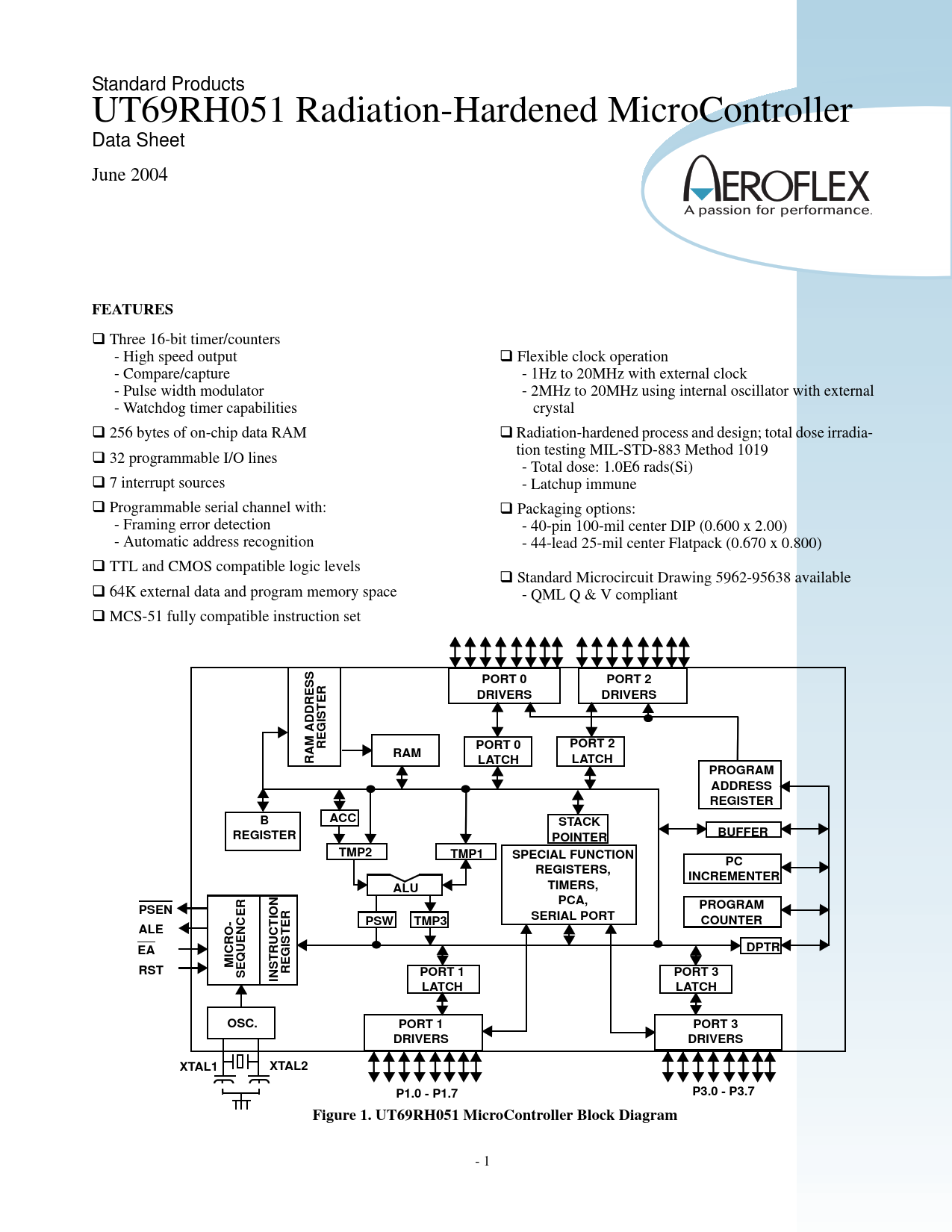 Standard Products UT69RH051 Radiation-Hardened MicroController Data Sheet June 2004