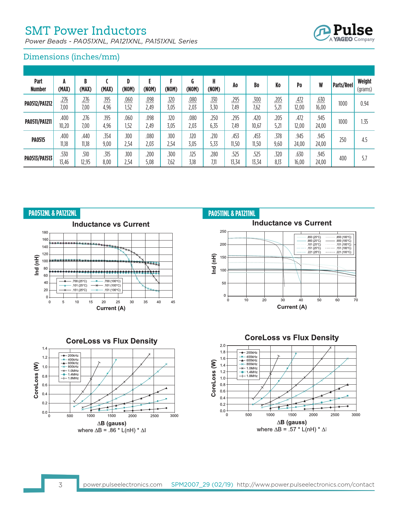 Datasheet PA051XNL, PA121XNL, PA151XNL (Pulse Electronics) - 3
