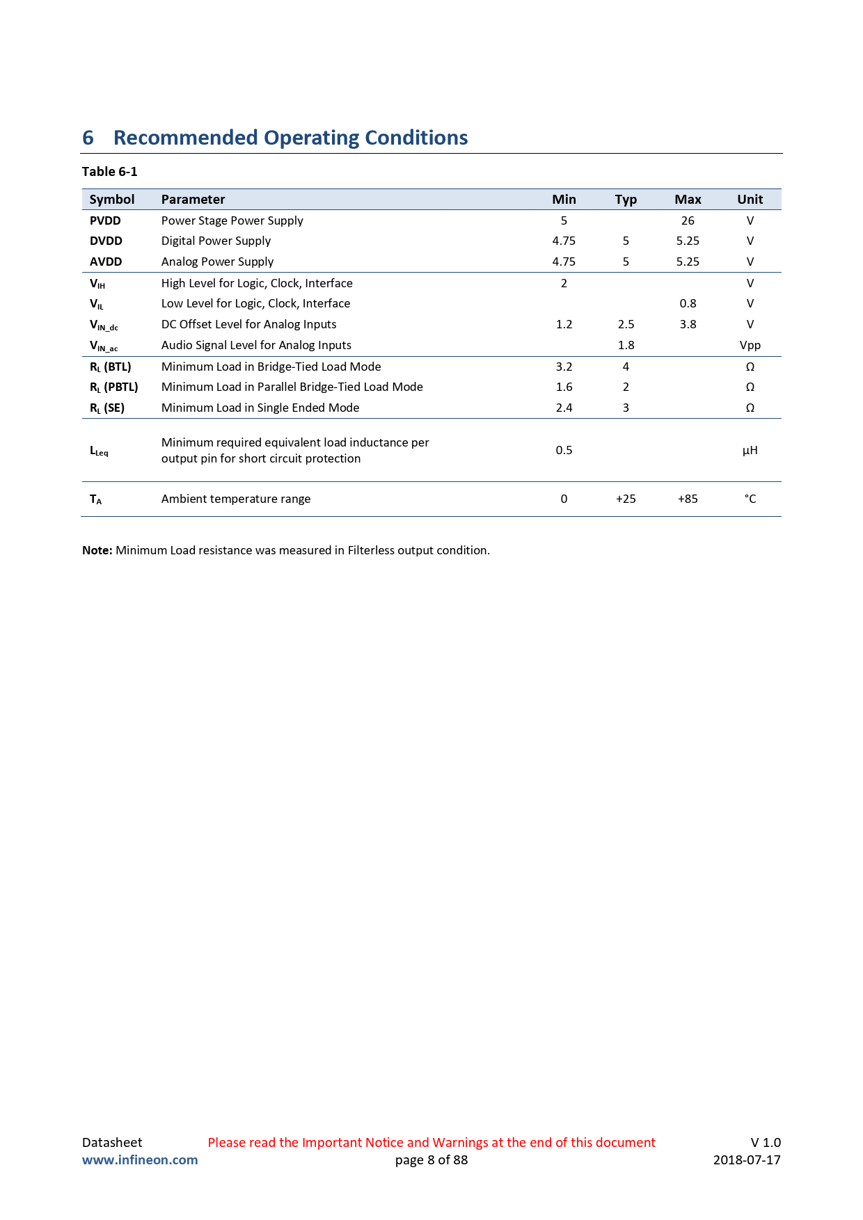 Minimum Load resistance was measured in Filterless output condition. Datasheet Please read the Important Notice and Warnings at the end of this document V 1.0