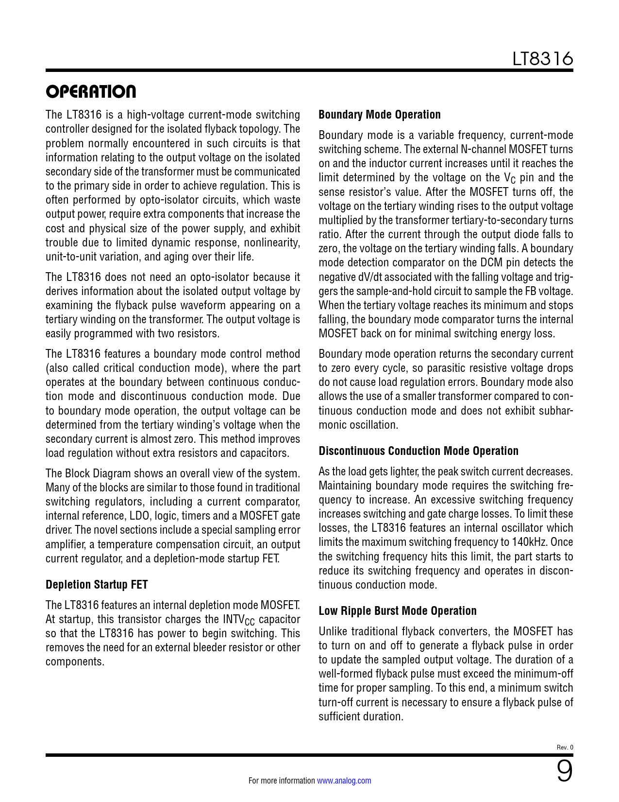 tinuous conduction mode. The LT8316 features an internal depletion mode MOSFET.