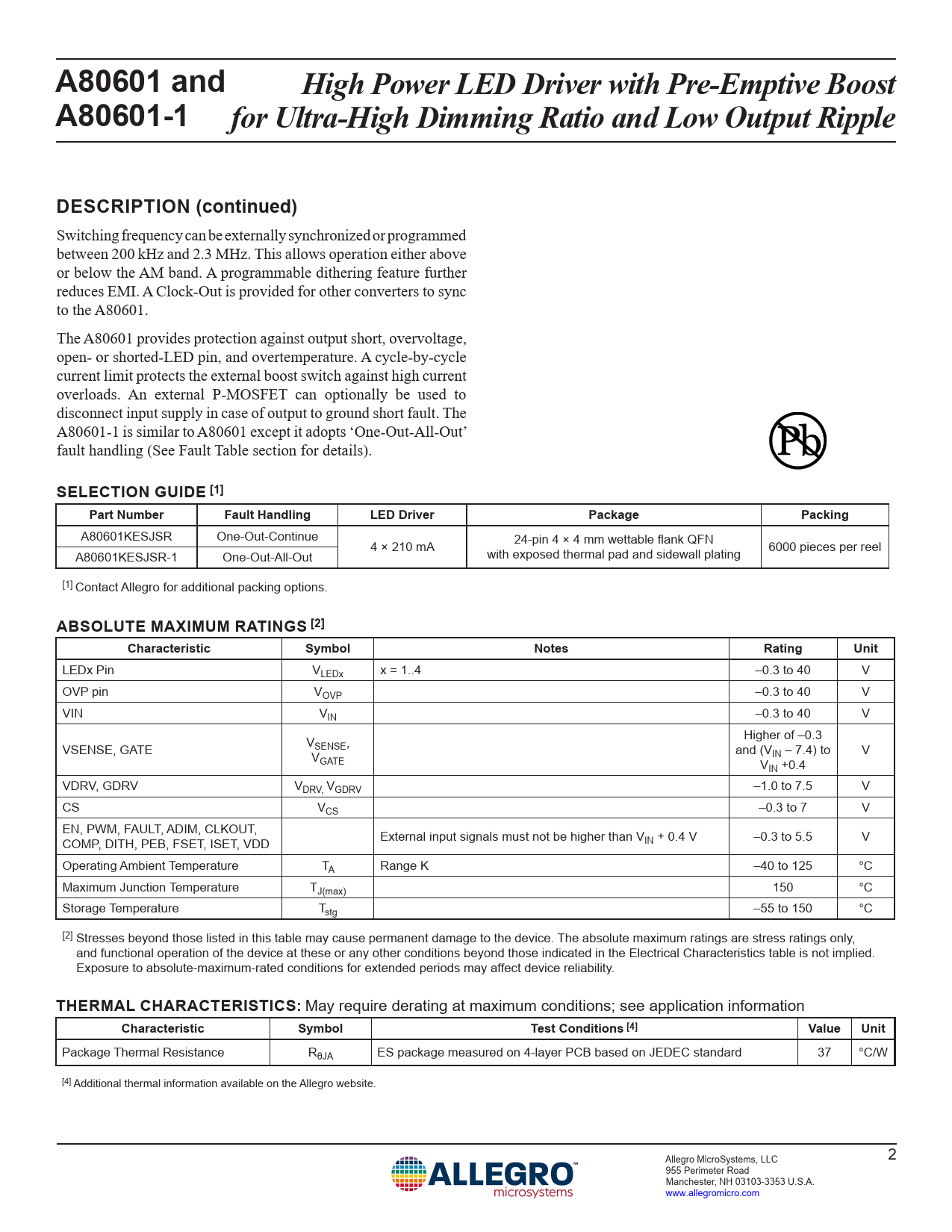 Datasheet A80601, A80601-1 (Allegro) - 2