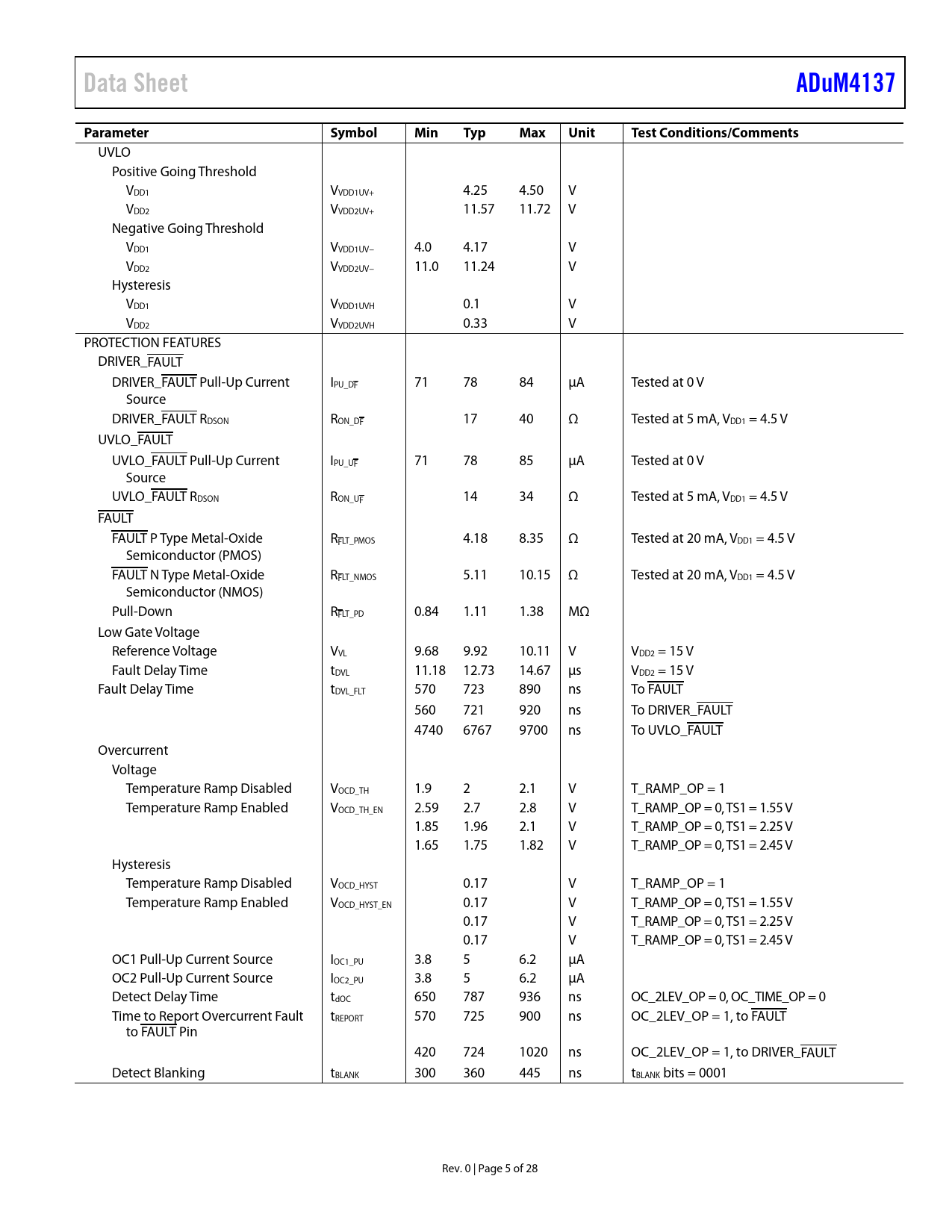 Pages / Page28 / 5 — Data Sheet. ADuM4137. Parameter. Symbol. Min. Typ. Max. Unit. Test …