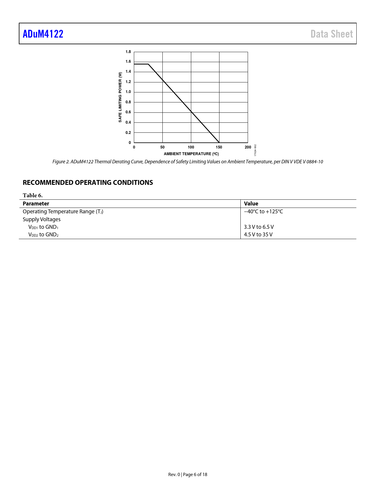 ADuM4122. Data Sheet. 1.8. 1.6. 1.4. (W R. 1.2. E W O P. 1.0. G IN. 0.8. IT IM L. 0.6. E F A S. 0.4. 0.2. 100. 150. 200. AMBIENT TEMPERATURE (ºC)