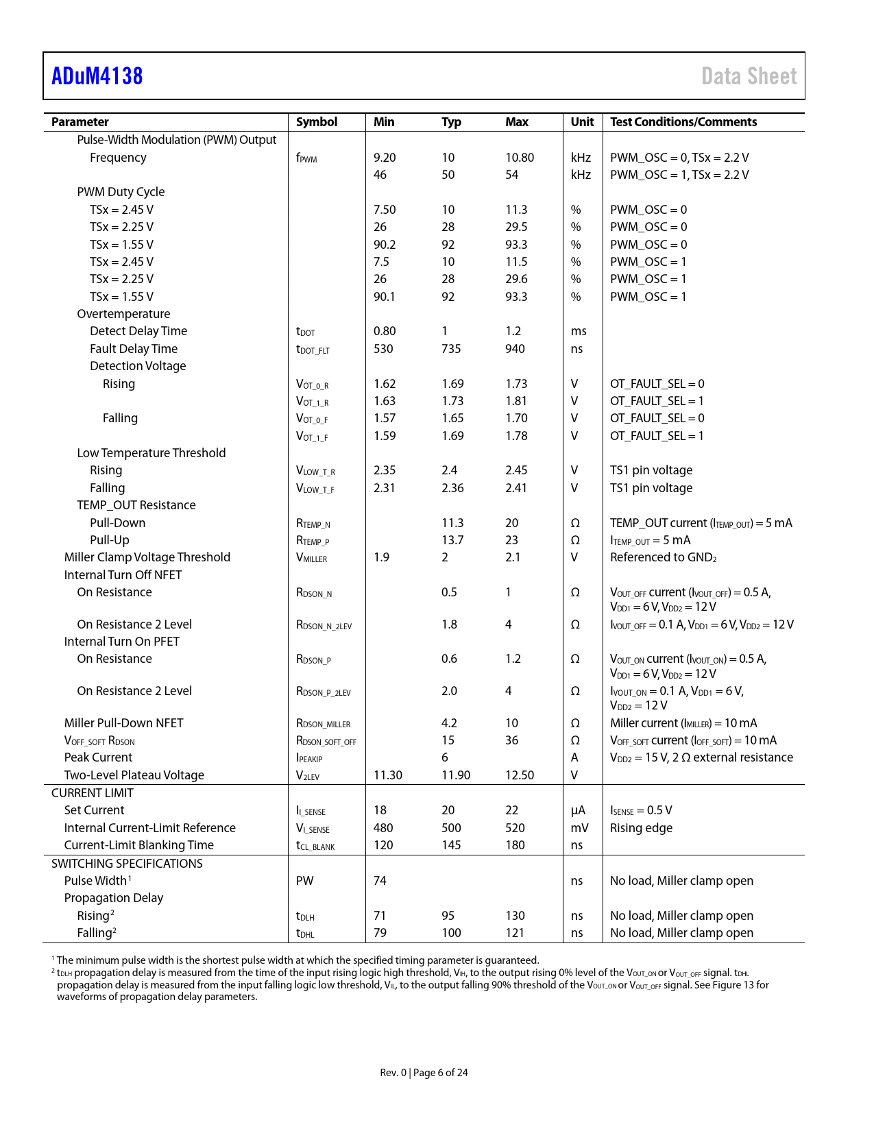 Pages / Page24 / 6 — ADuM4138. Data Sheet. Parameter. Symbol. Min. Typ. Max. Unit Test …