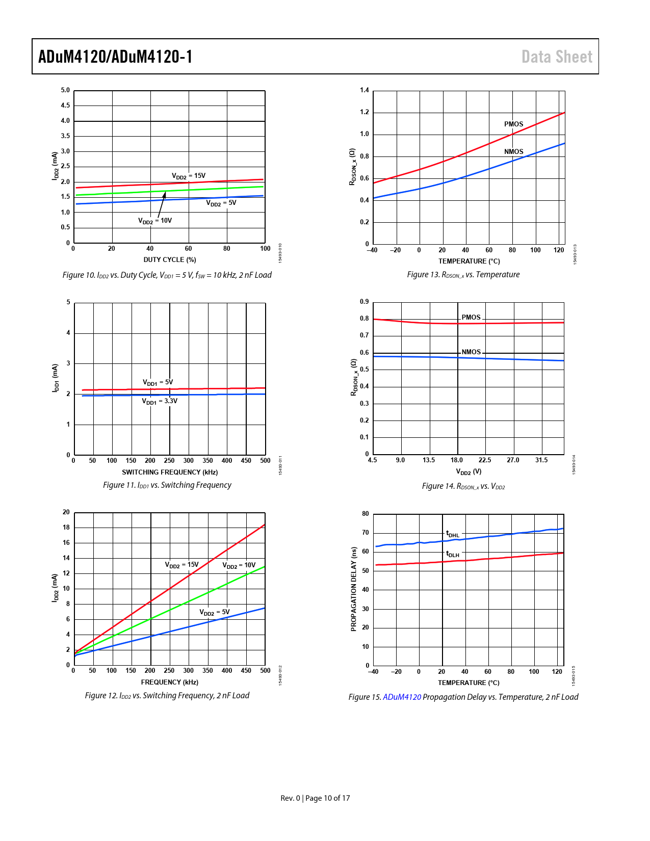 ADuM4120/ADuM4120-1. Data Sheet. 5.0. 1.4. 4.5. 1.2. 4.0. PMOS. 3.5. 1.0. ) 3.0. NMOS. Ω ( 0.8. (m 2.5. I DD. VDD2 = 15V. 2.0. DSO 0.6. 1.5. 0.4. DD2 = 5V
