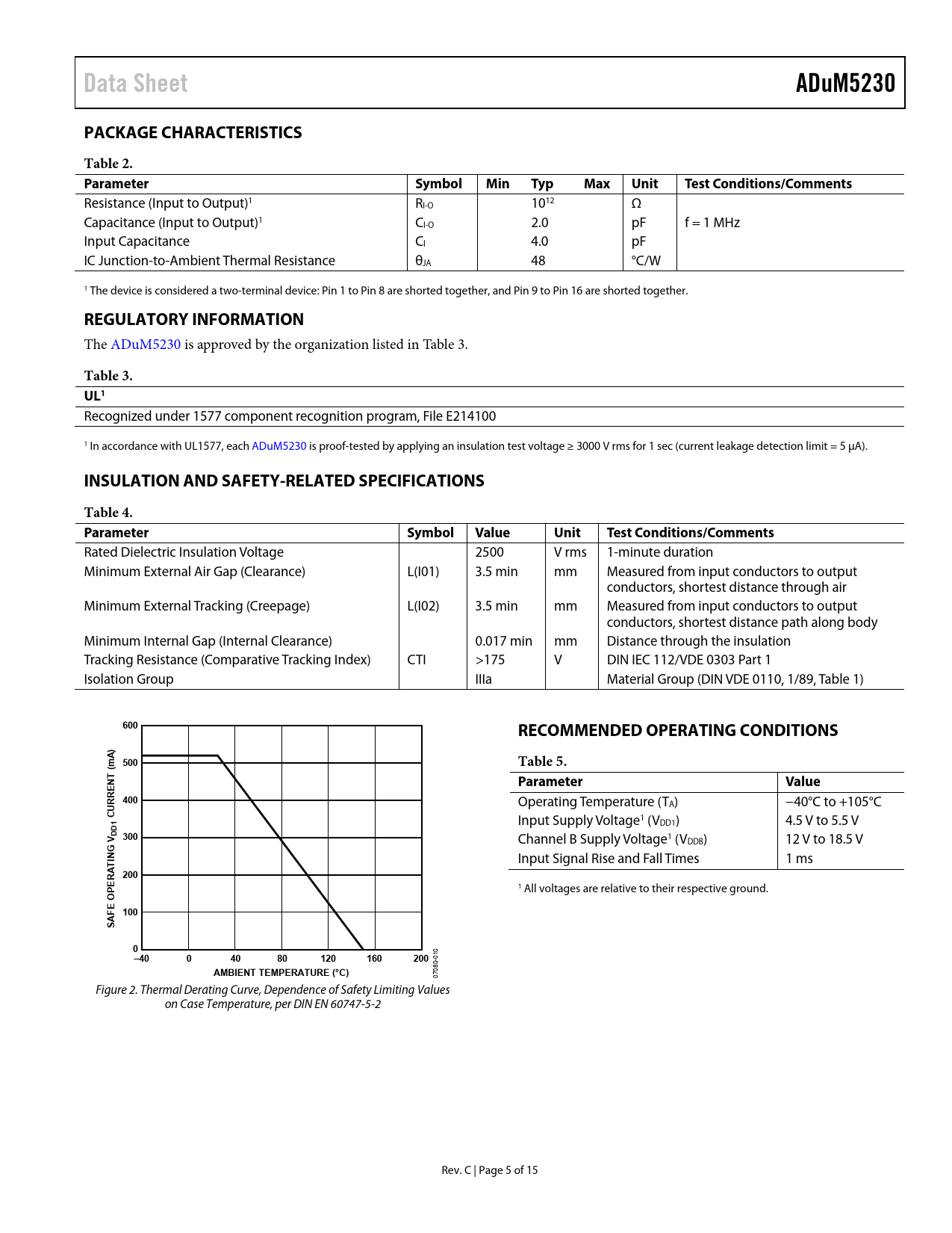 Pages / Page15 / 5 — Data Sheet. ADuM5230. PACKAGE CHARACTERISTICS. Table 2. Parameter. …