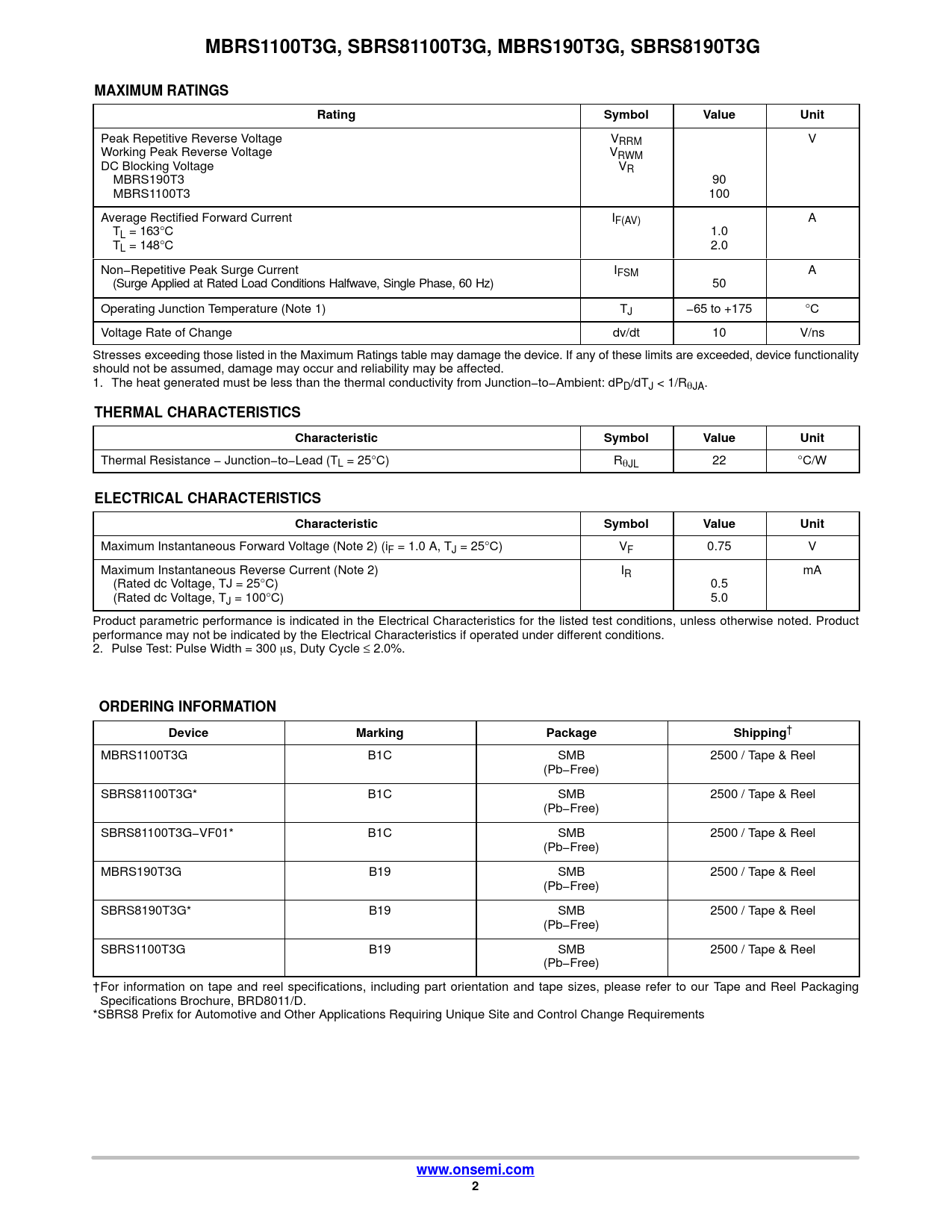 Pages / Page4 / 2 — MBRS1100T3G, SBRS81100T3G, MBRS190T3G, SBRS8190T3G. MAXIMUM RATINGS. …