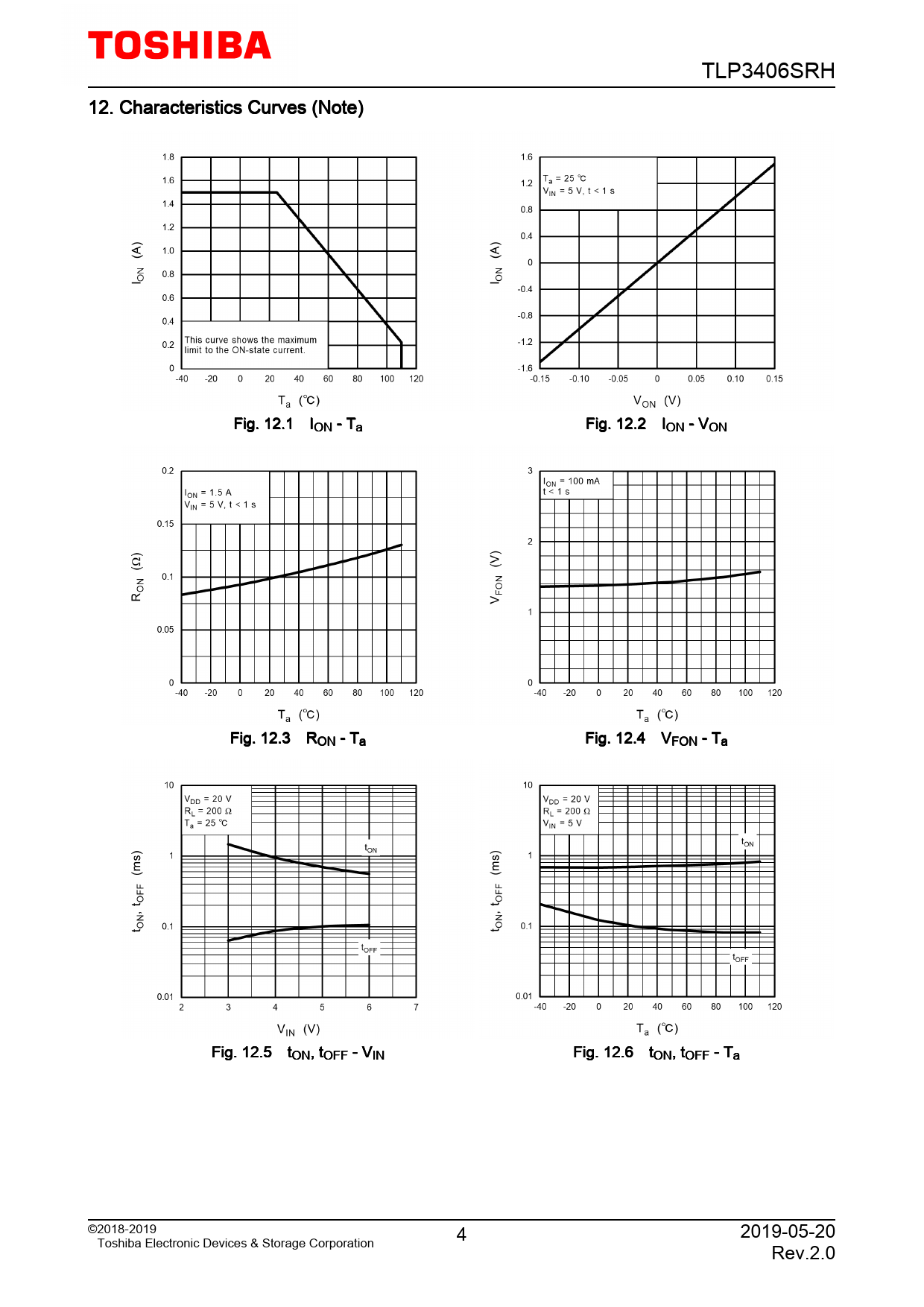 | Pages / Page | 14 / 4 — TLP3406SRH. 12. Characteristics. Curves. (Note). Fig. 12.1. ION. -. Ta. … |