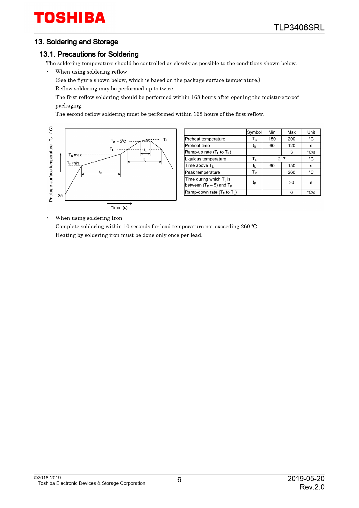 | Pages / Page | 14 / 6 — TLP3406SRL. 13. Soldering. and. Storage. 13.1. Precautions. for. … |