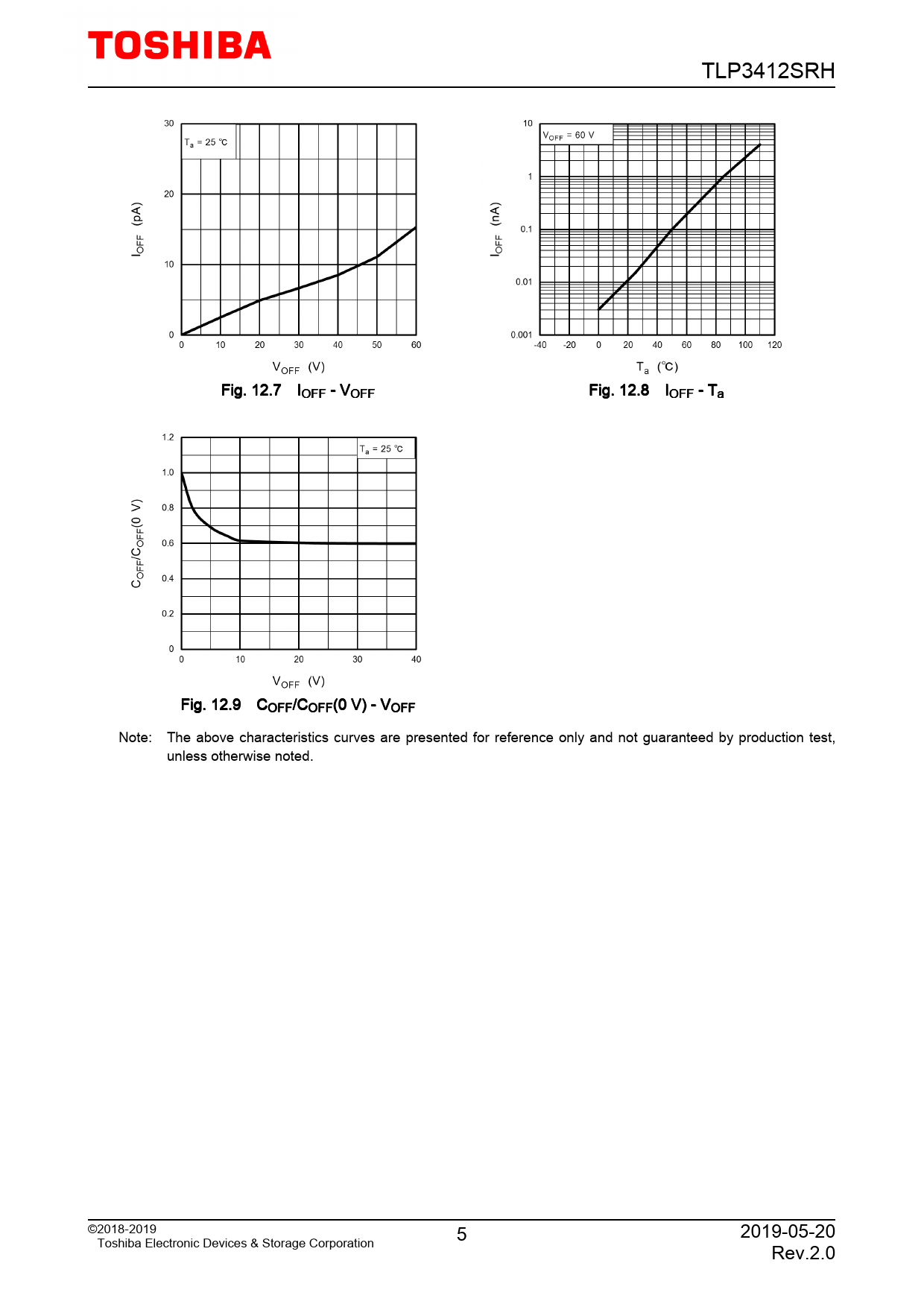 TLP3412SRH. Fig. 12.7. IOFF. -. VOFF. Fig. 12.8. IOFF. -. Ta. Fig. 12.9. COFF/COFF(0. V). -. VOFF. Note:. The. above. characteristics. curves. are. presented. for
