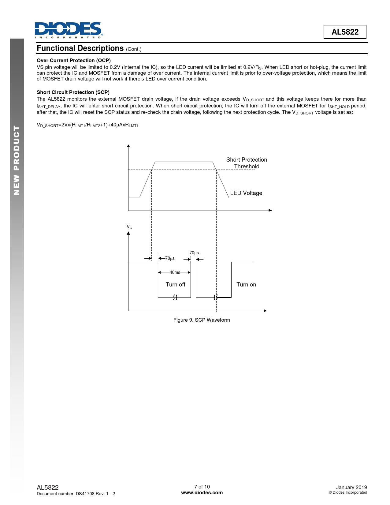 LED Voltage VG 70s 70s 40ms Turn off Turn on Figure 9. SCP Waveform AL5822 7 of 10 January 2019 Document number: DS41708 Rev. 1 - 2