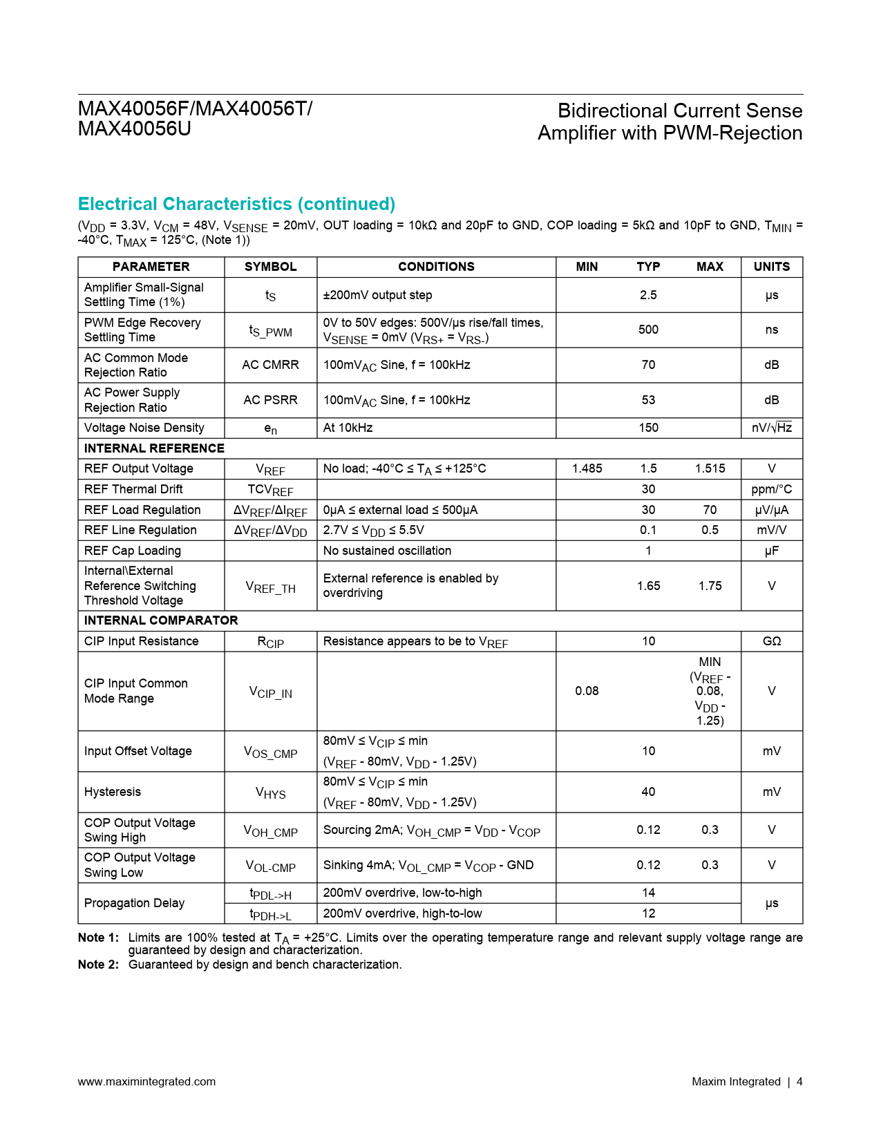 Electrical Characteristics (continued). PARAMETER. SYMBOL. CONDITIONS. MIN. TYP. MAX. UNITS. INTERNAL REFERENCE. INTERNAL COMPARATOR