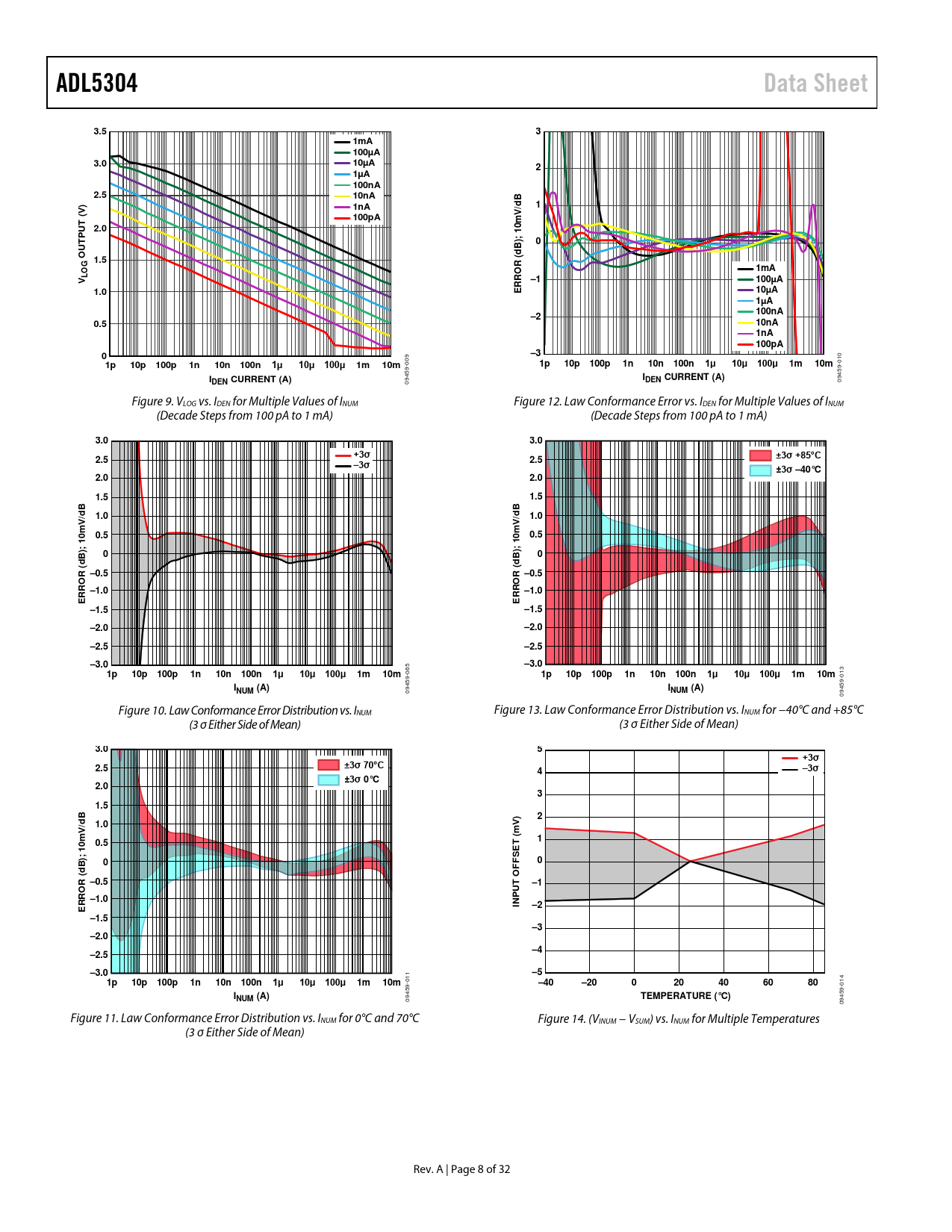 09459- Figure 9. VLOG vs. IDEN for Multiple Values of INUM Figure 12. Law Conformance Error vs. IDEN for Multiple Values of INUM (Decade Steps from 100 pA to 1 mA) (Decade Steps from 100 pA to 1 mA)