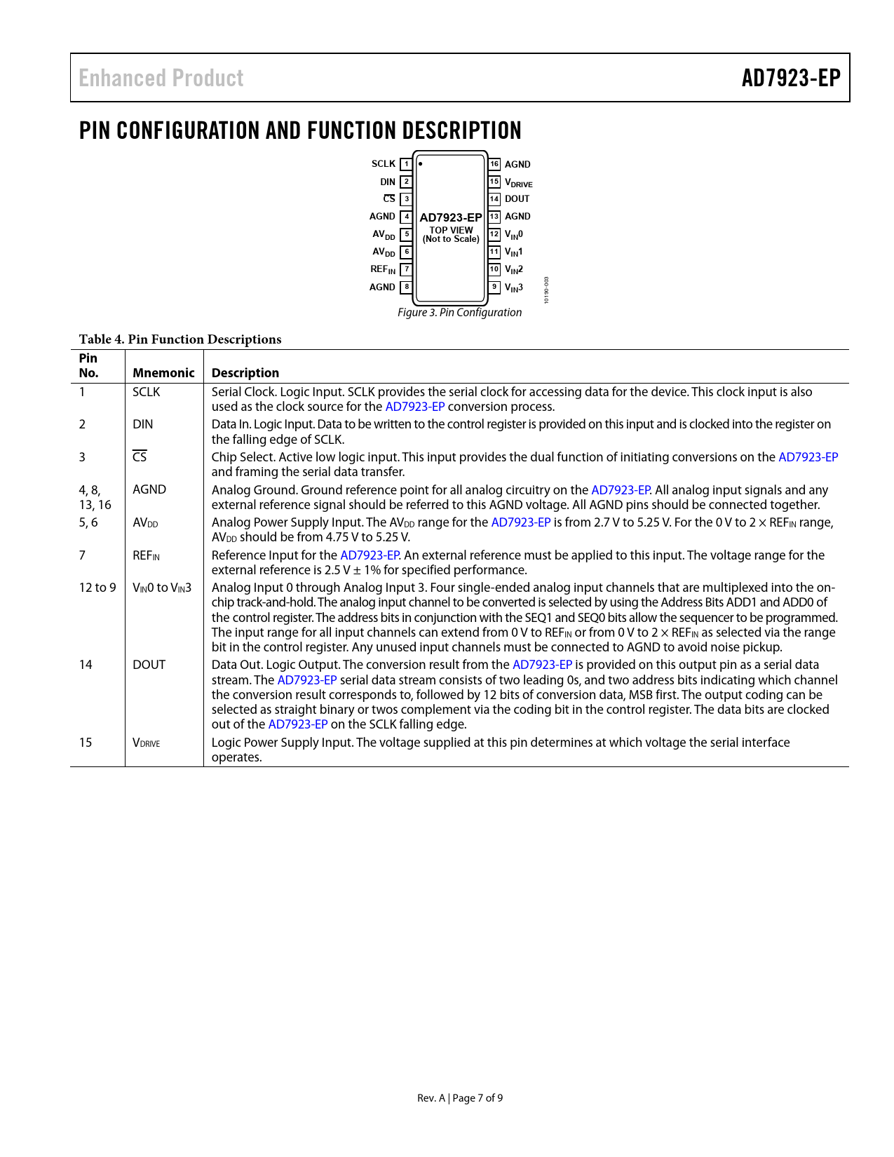 Pages / Page9 / 7 — Enhanced Product. AD7923-EP. PIN CONFIGURATION AND FUNCTION DESCRIPTION. …