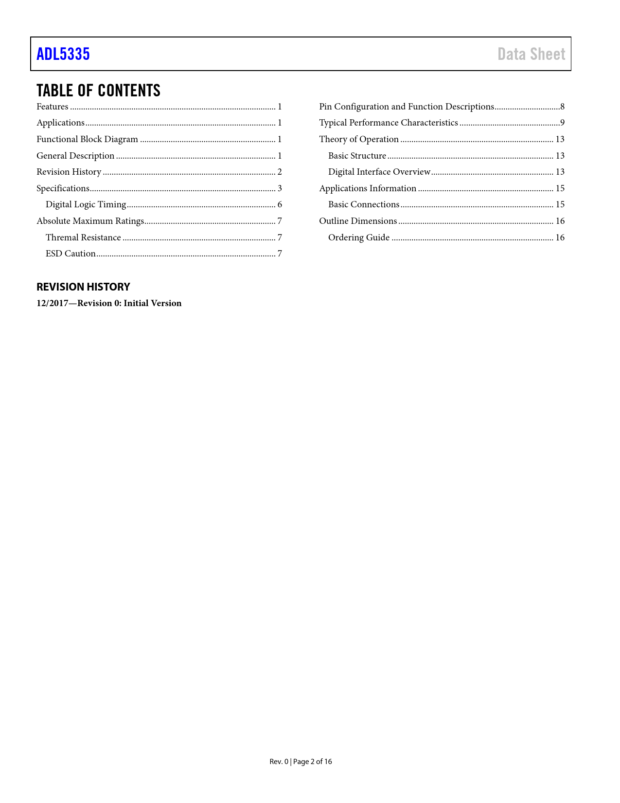 Pages / Page16 / 2 — ADL5335. Data Sheet. TABLE OF CONTENTS. REVISION HISTORY 12/2017—Revision …