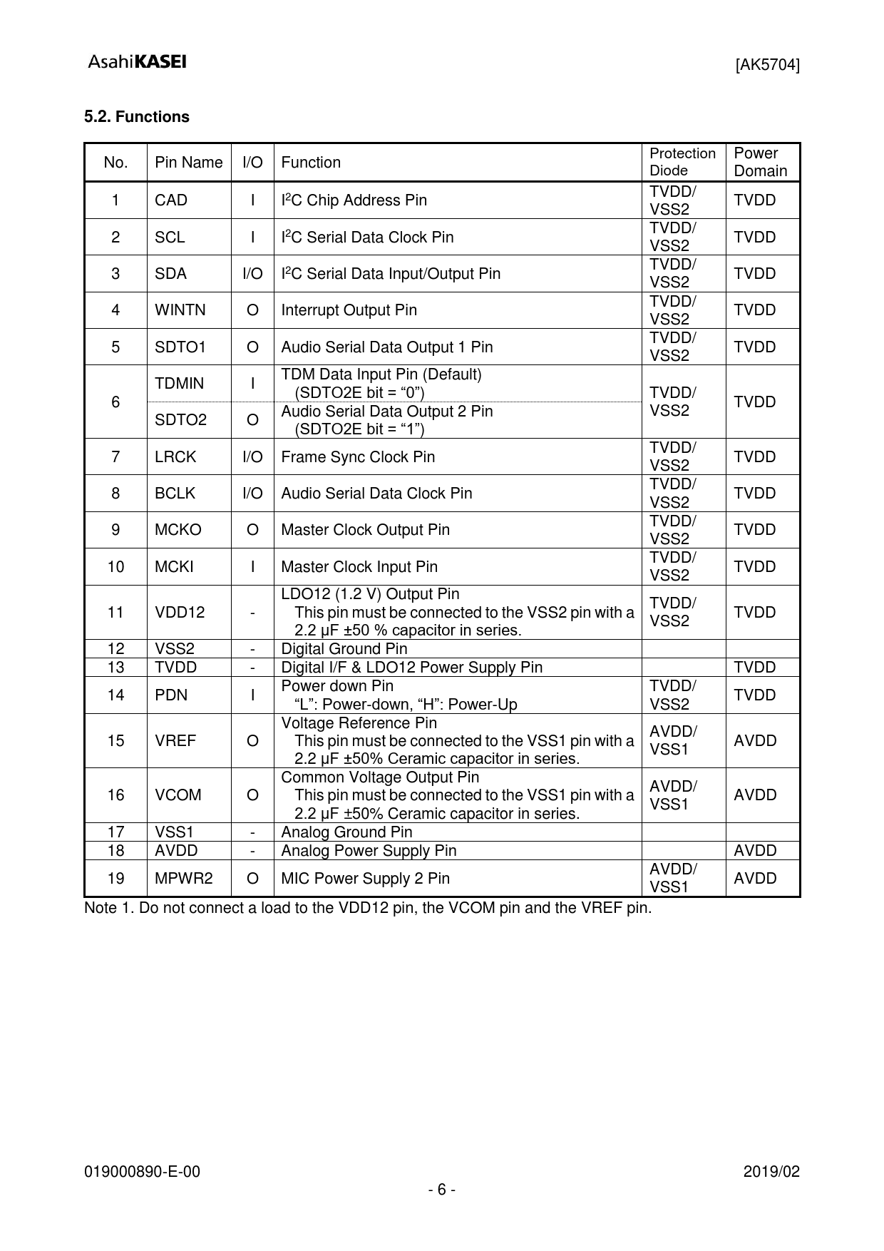 Datasheet AK5704 (Asahi Kasei Microdevices) - 6