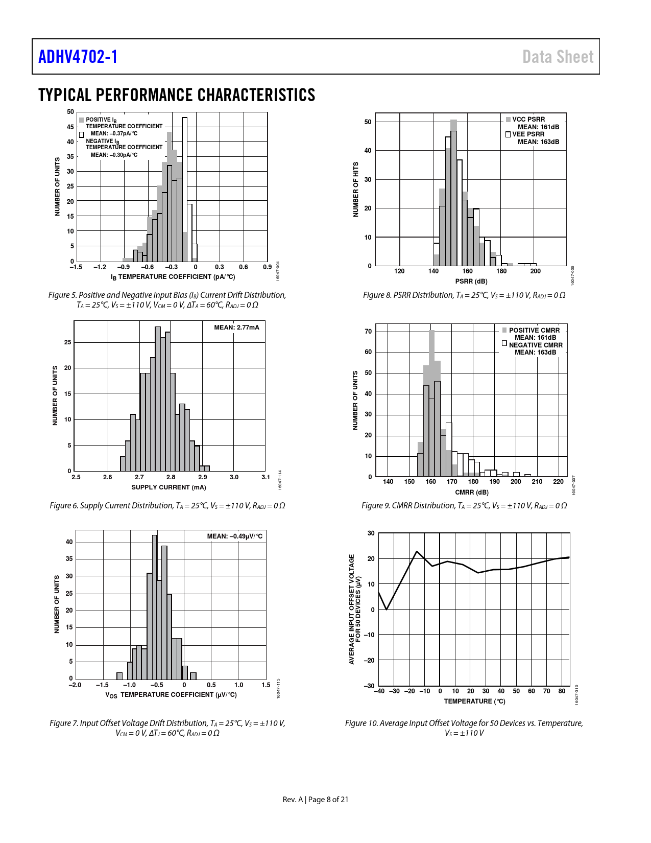 ADHV4702-1. Data Sheet. TYPICAL PERFORMANCE CHARACTERISTICS. POSITIVE I. VCC PSRR. TEMPERATURE COEFFICIENT. MEAN: 161dB