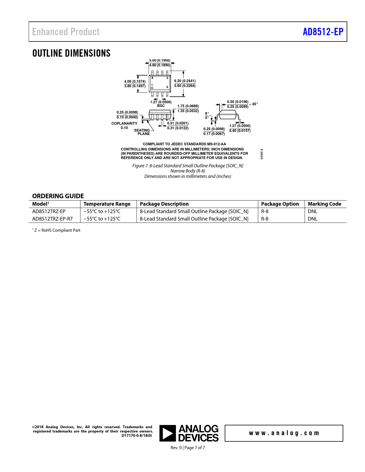 | Pages / Page | 7 / 7 — Enhanced Product. AD8512-EP. OUTLINE DIMENSIONS. 5.00 (0.1968) 4.80 … |