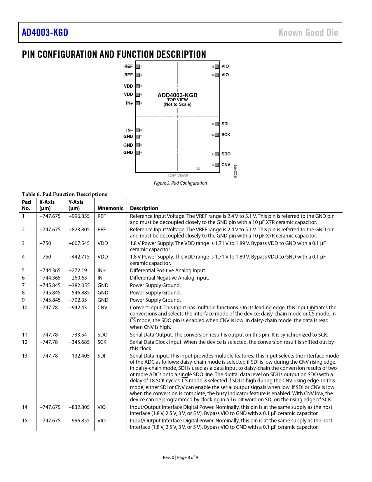 Pages / Page9 / 8 — AD4003-KGD. Known Good Die. PIN CONFIGURATION AND FUNCTION DESCRIPTION. …