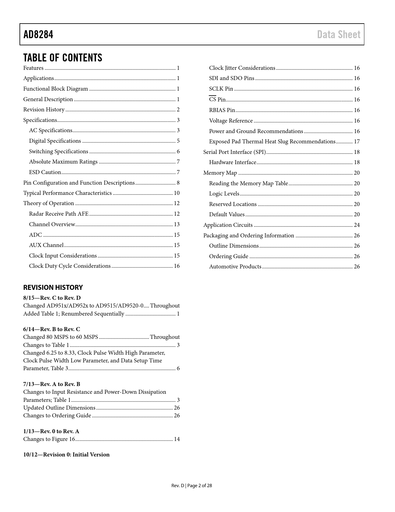 Pages / Page28 / 2 — AD8284. Data Sheet. TABLE OF CONTENTS. REVISION HISTORY 8/15—Rev. C to …