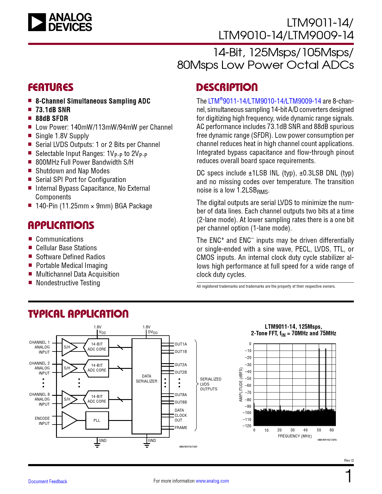Datasheet LTM9011-14, LTM9010-14, LTM9009-14 Analog Devices, Revision: D
