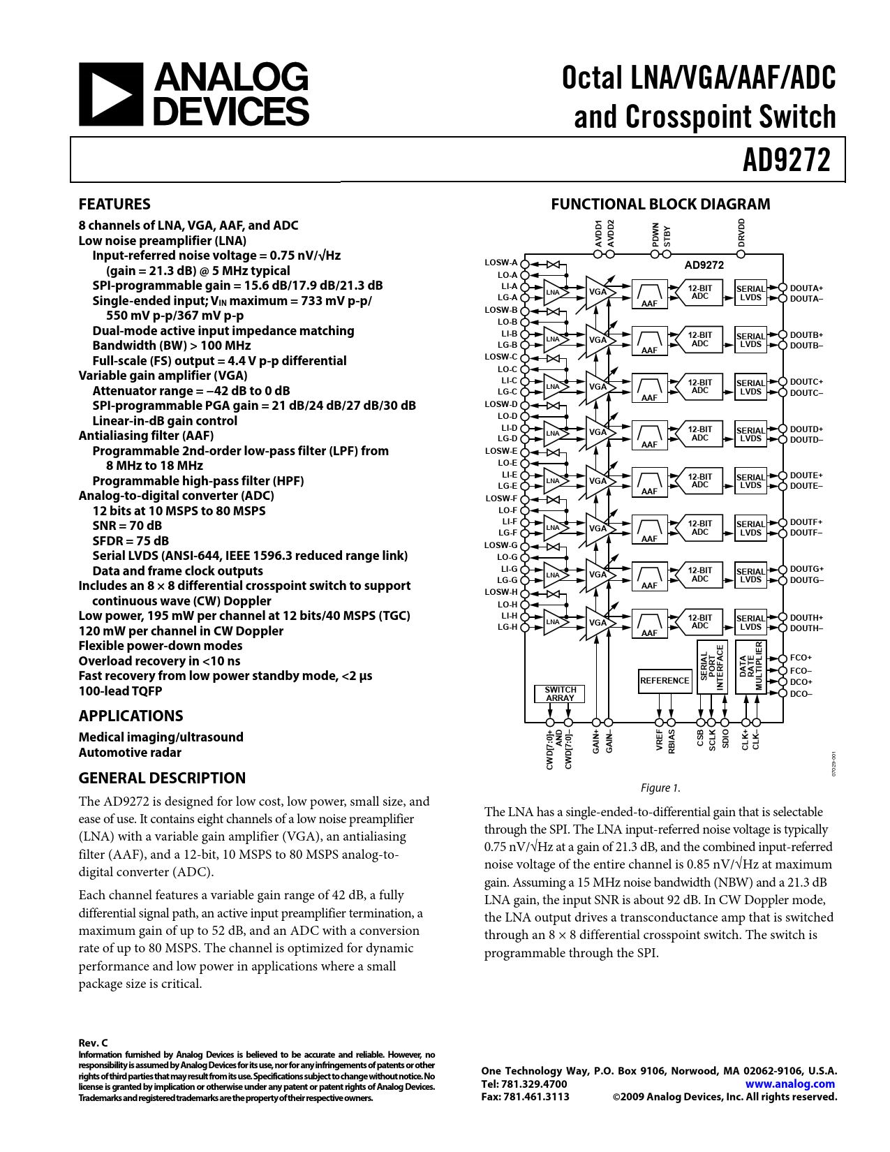 | Pages / Page | 44 / 1 — Octal LNA/VGA/AAF/ADC. and Crosspoint Switch. AD9272. FEATURES. … |
