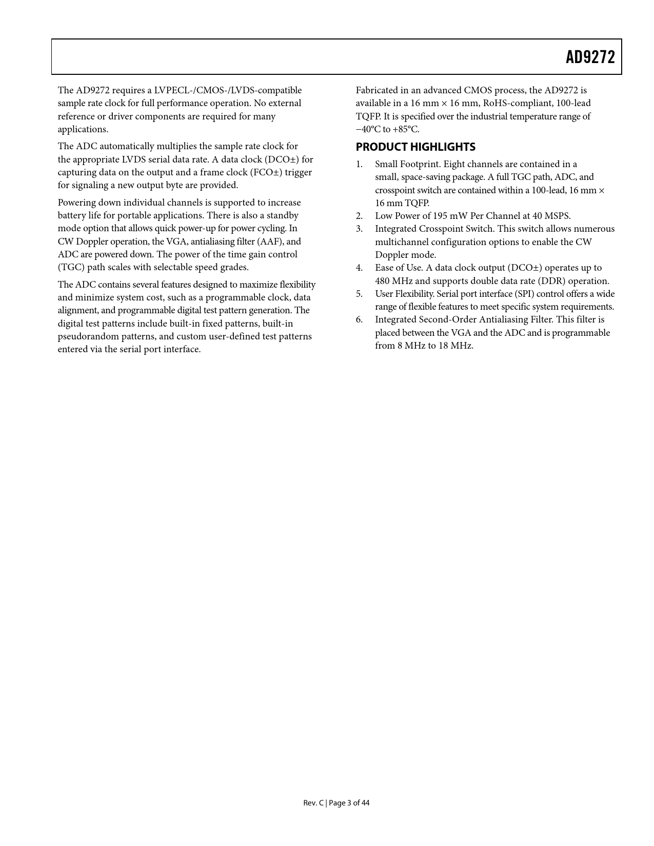 Pages / Page44 / 3 — AD9272. PRODUCT HIGHLIGHTS