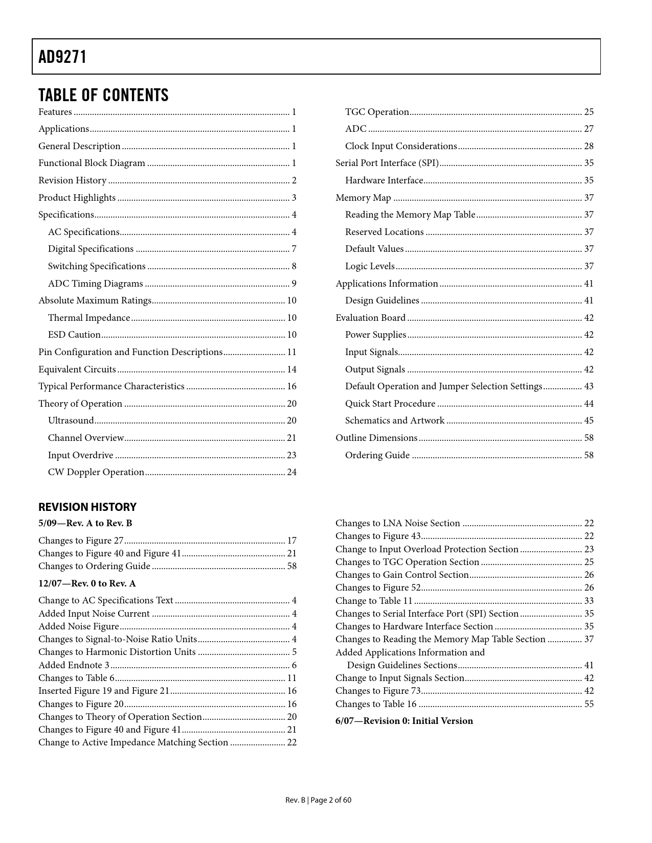 Pages / Page60 / 2 — AD9271. TABLE OF CONTENTS. REVISION HISTORY. 5/09—Rev. A to Rev. B. …