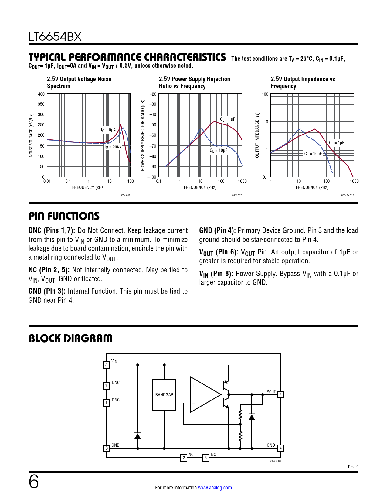 VIN 8 DNC 7 + VOUT BANDGAP 6 DNC 1 – GND GND 3 4 NC NC 2 5 6654BX BD Rev. 0 6 For more information www.analog.com Document Outline Features Applications Typical Application Description Absolute Maximum Ratings Order Information Pin Configuration Electrical Characteristics Typical Performance Characteristics Pin Functions Block Diagram Applications Information Package Description Typical Application Related Parts