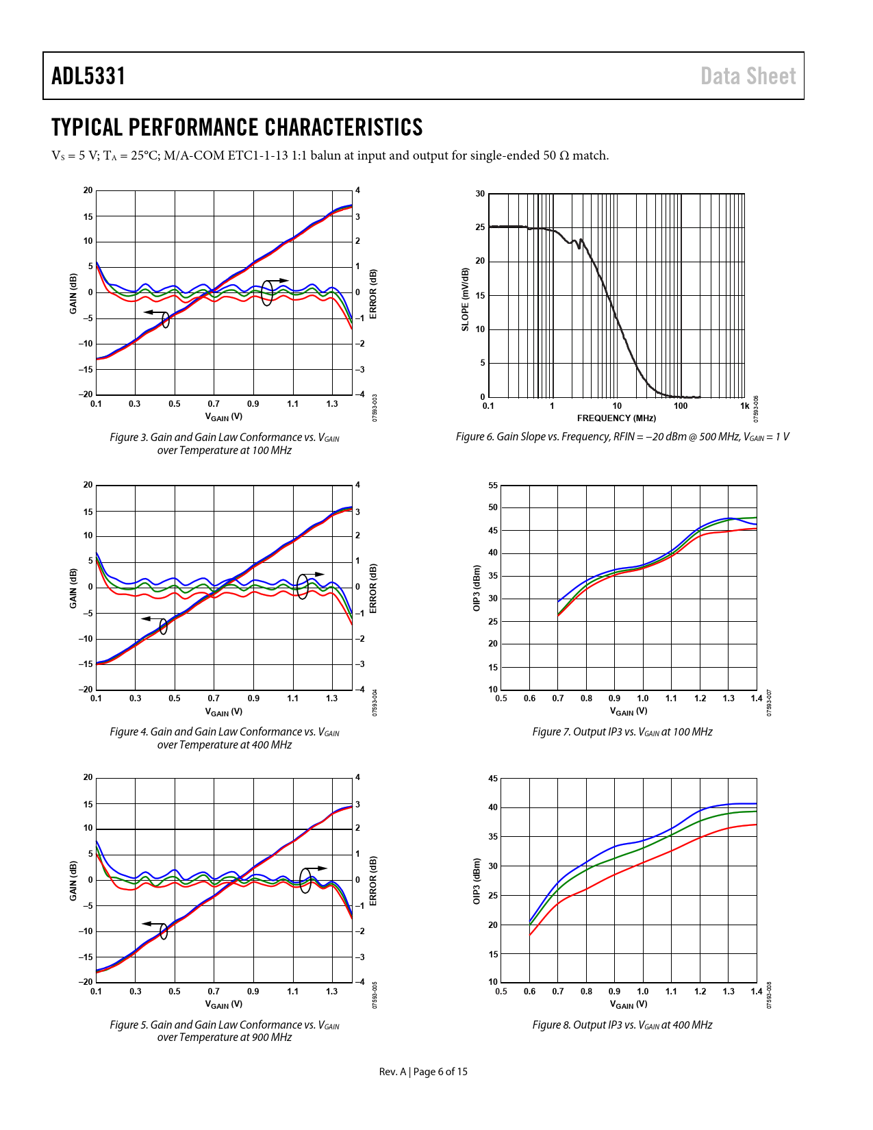 ADL5331. Data Sheet. TYPICAL PERFORMANCE CHARACTERISTICS. dB). N (. R (. AI G. PE (m. –1 ERRO. O SL 10. –10. –15. –20. 0.1. 0.3. 0.5. 0.7. 0.9. 1.1. 1.3. 100