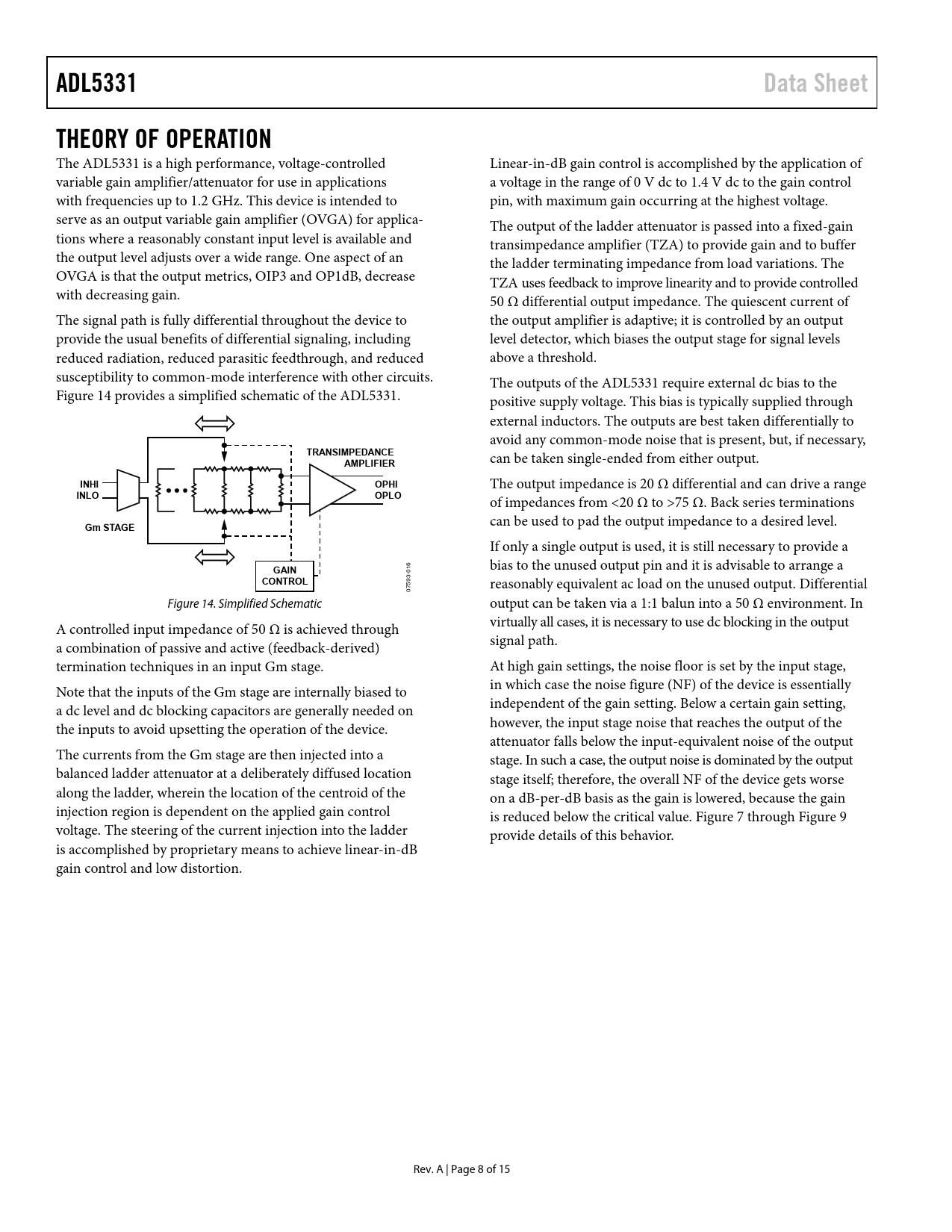 Pages / Page15 / 8 — ADL5331. Data Sheet. THEORY OF OPERATION. TRANSIMPEDANCE. AMPLIFIER. …