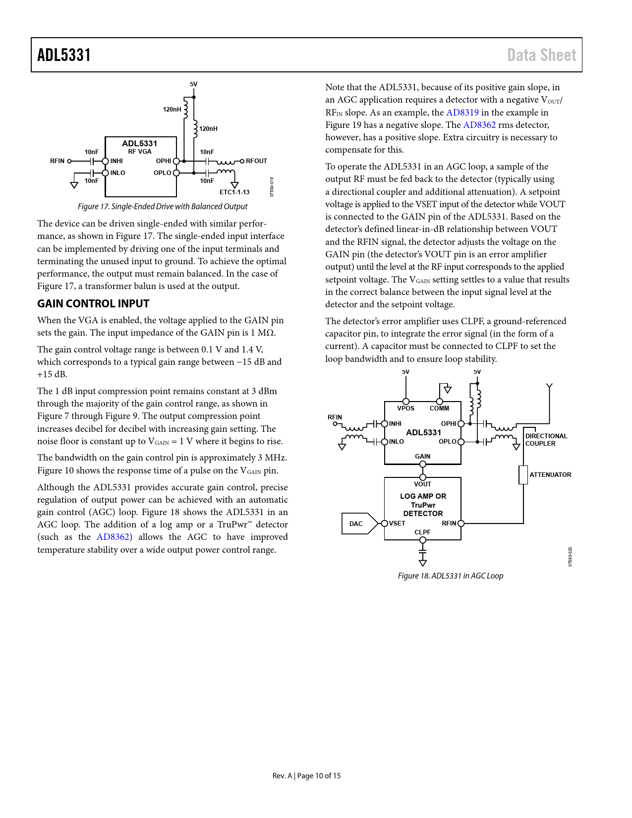 Pages / Page15 / 10 — ADL5331. Data Sheet. 120nH. 10nF. RF VGA. RFIN. INHI. OPHI. RFOUT. INLO. …