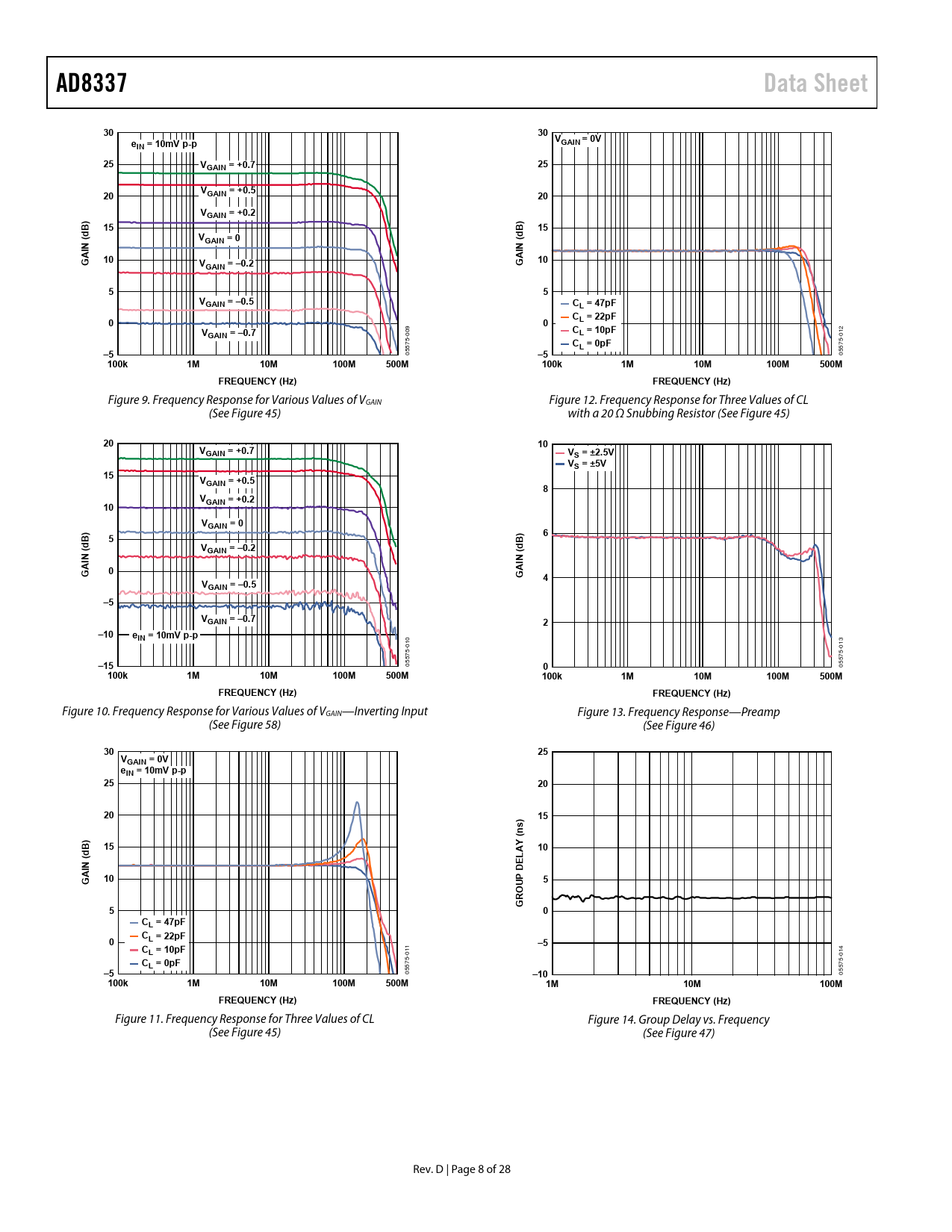 AD8337 Data Sheet VGAIN = 0V IN = 10mV p-p VGAIN = +0.7 GAIN = +0.5 VGAIN = +0.2 VGAIN = 0 GAIN = –0.2 VGAIN = –0.5 CL = 47pF C