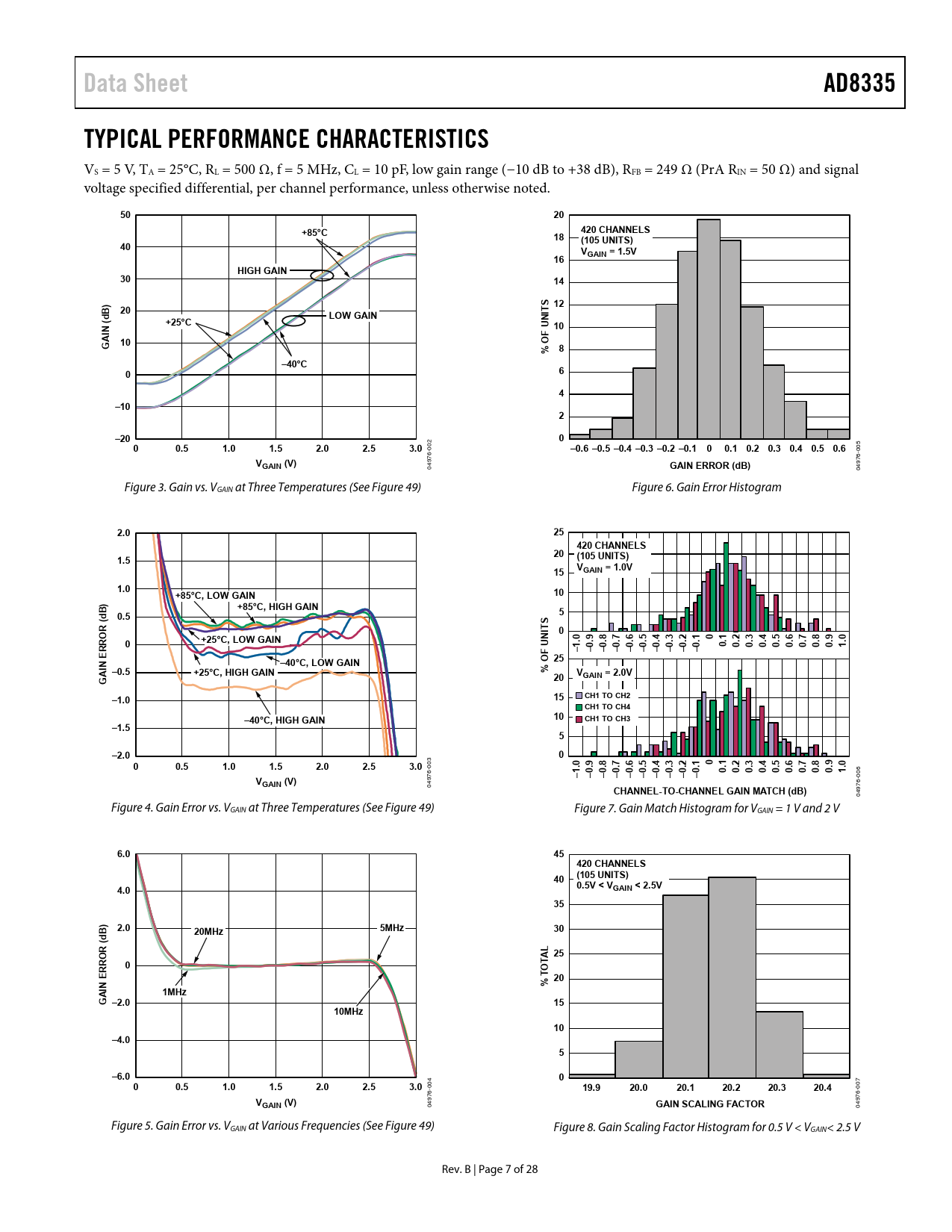 04 Figure 3. Gain vs. VGAIN at Three Temperatures (See Figure 49) Figure 6. Gain Error Histogram