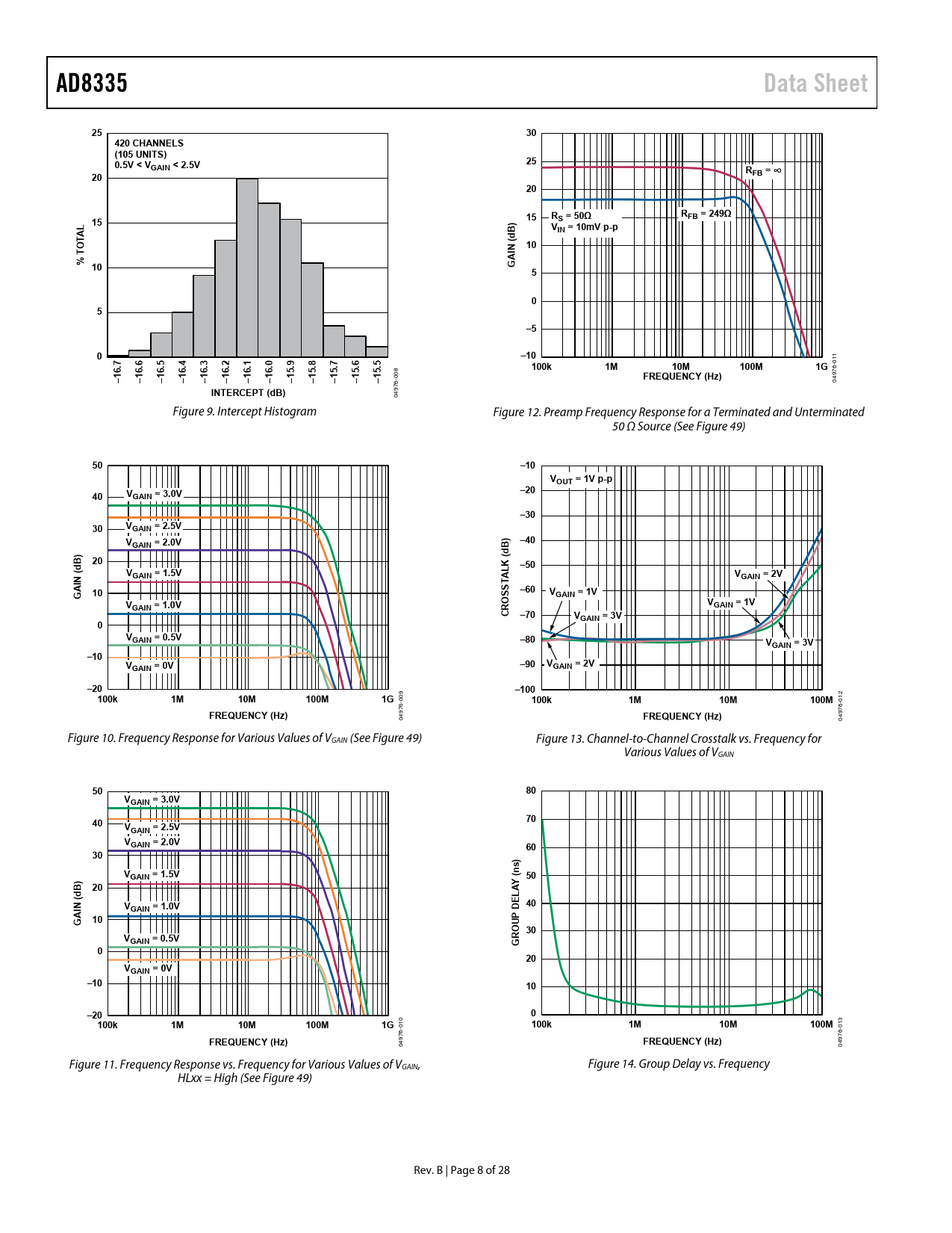 AD8335. Data Sheet. 420 CHANNELS (105 UNITS) 0.5V < V. GAIN < 2.5V. FB = ∞. RFB = 249Ω. S = 50Ω. ) B. VIN = 10mV p-p. %T 10. –10. 100k