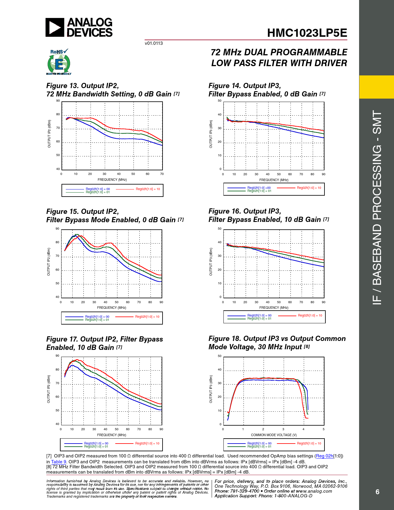 HMC1023LP5E. 72 MHz DUAL PROGRAMMABLE. LOW PASS FILTER WITH DRIVER. Figure 13. Output IP2,. Figure 14. Output IP3,