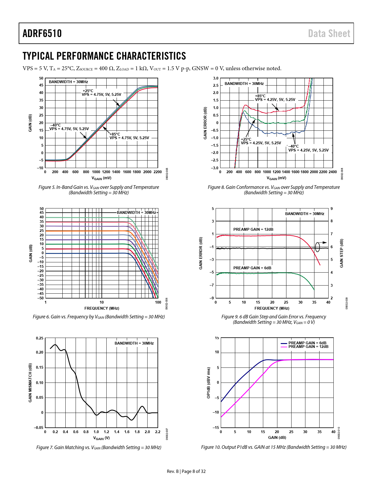 | Pages / Page | 32 / 8 — ADRF6510. Data Sheet. TYPICAL PERFORMANCE CHARACTERISTICS. 3.0. BANDWIDTH … |