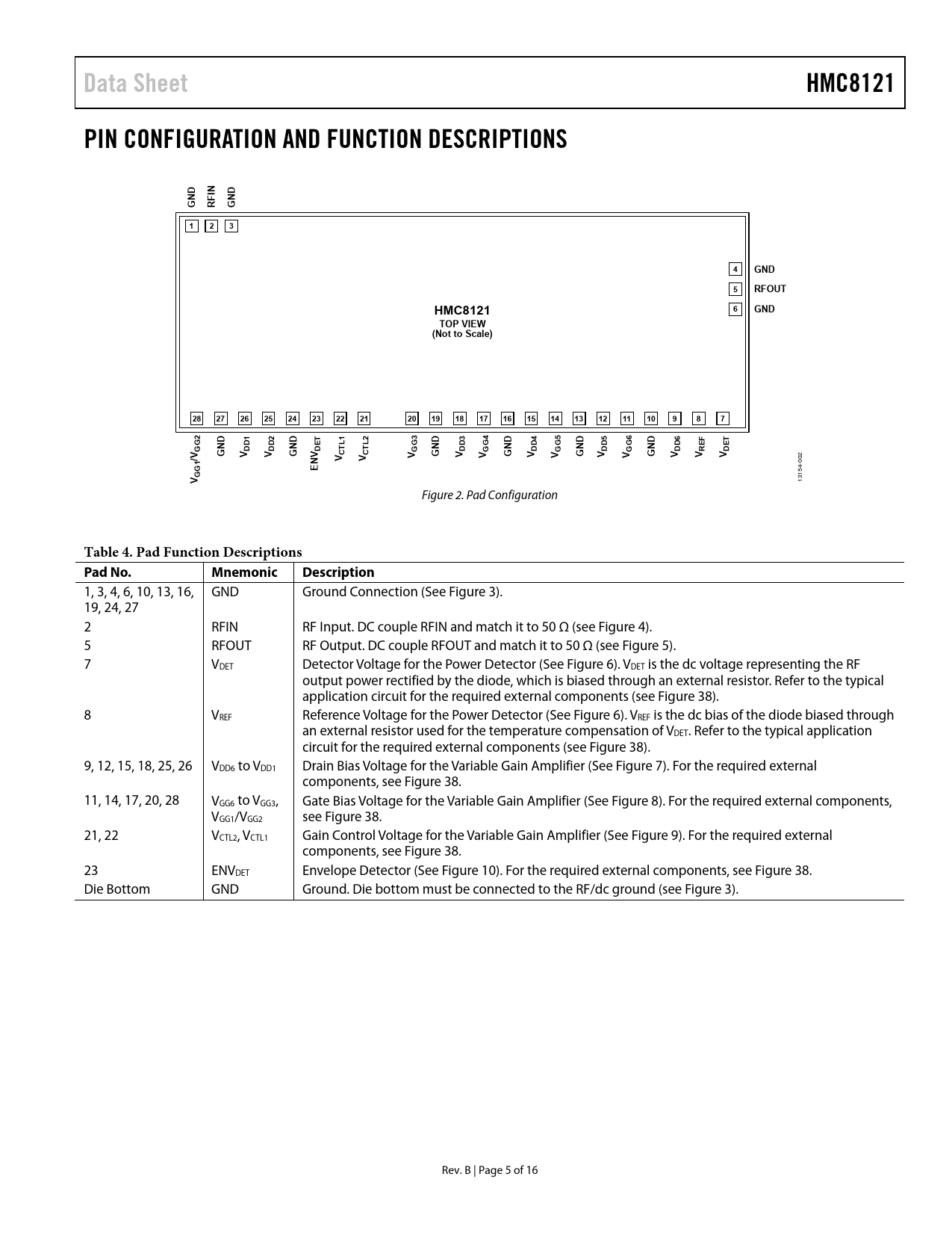 Pages / Page16 / 5 — Data Sheet. HMC8121. PIN CONFIGURATION AND FUNCTION DESCRIPTIONS. GND. …