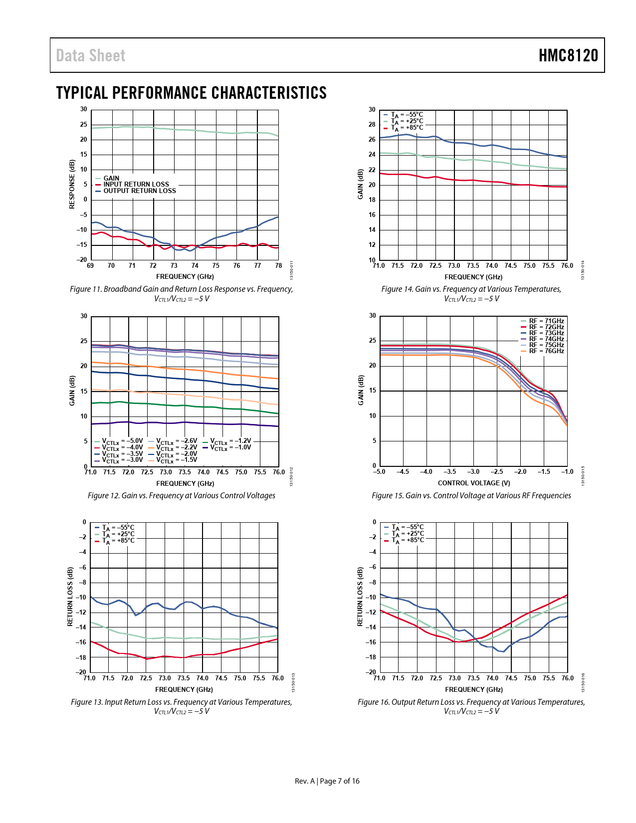 | Pages / Page | 16 / 7 — Data Sheet. HMC8120. TYPICAL PERFORMANCE CHARACTERISTICS. TA = –55°C. A = … |