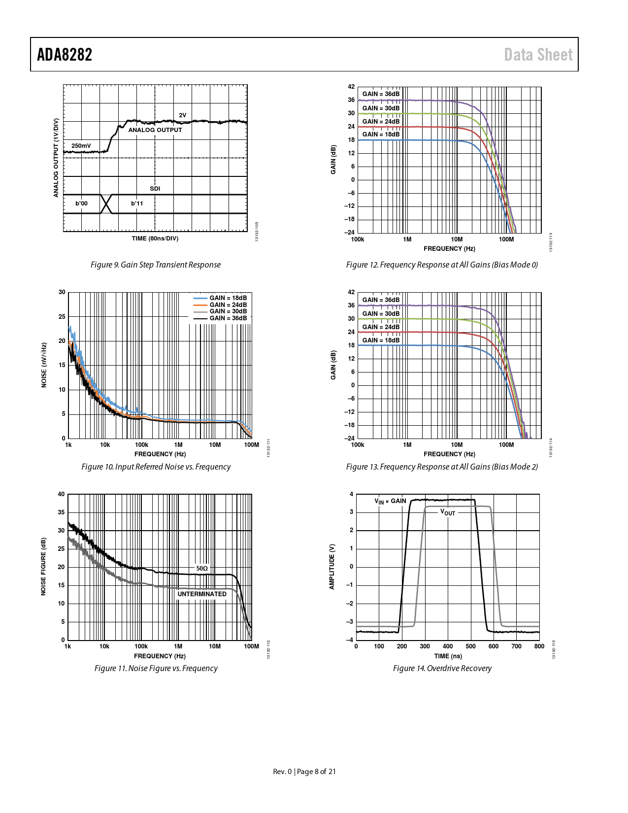 ADA8282. Data Sheet. GAIN = 36dB. GAIN = 30dB. ) IV. GAIN = 24dB. ANALOG OUTPUT. GAIN = 18dB. T (. 250mV. B) d. N ( AI. LOG OU. A N. SDI. b'00. b'11. –12
