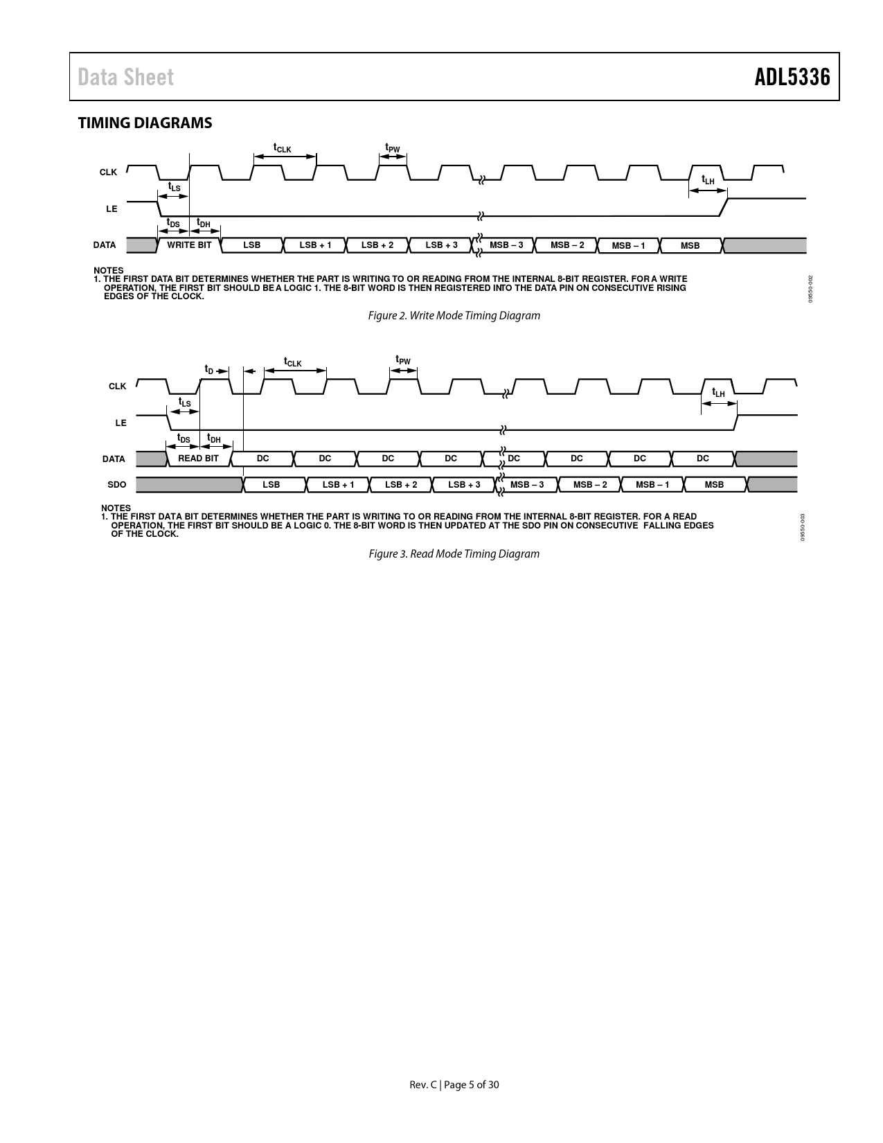 Pages / Page30 / 5 — Data Sheet. ADL5336. TIMING DIAGRAMS. CLK. tLH. tLS. DATA. WRITE BIT. …